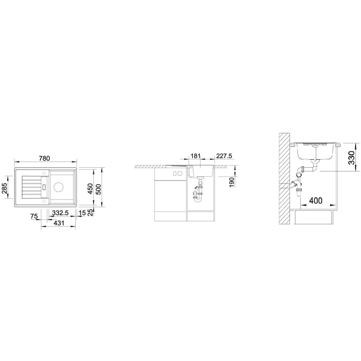 - Abmessungen der Spüle: 78 x 50 cm