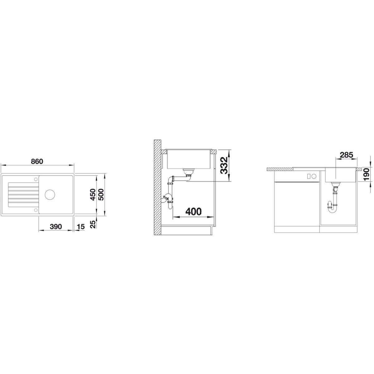 - Abmessungen des Spülbeckens: 86 x 50 cm