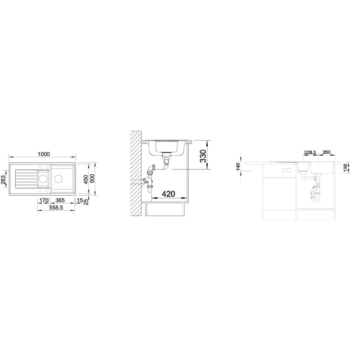 - Abmessungen der Spüle: 100 x 50 cm