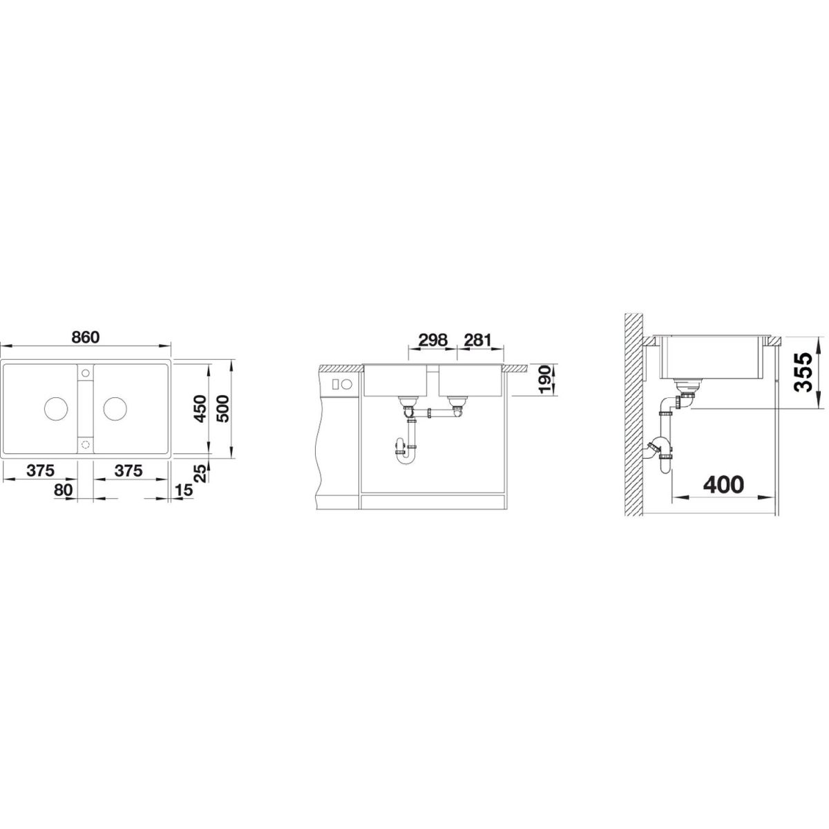 - Abmessungen der Spüle: 86 x 50 cm