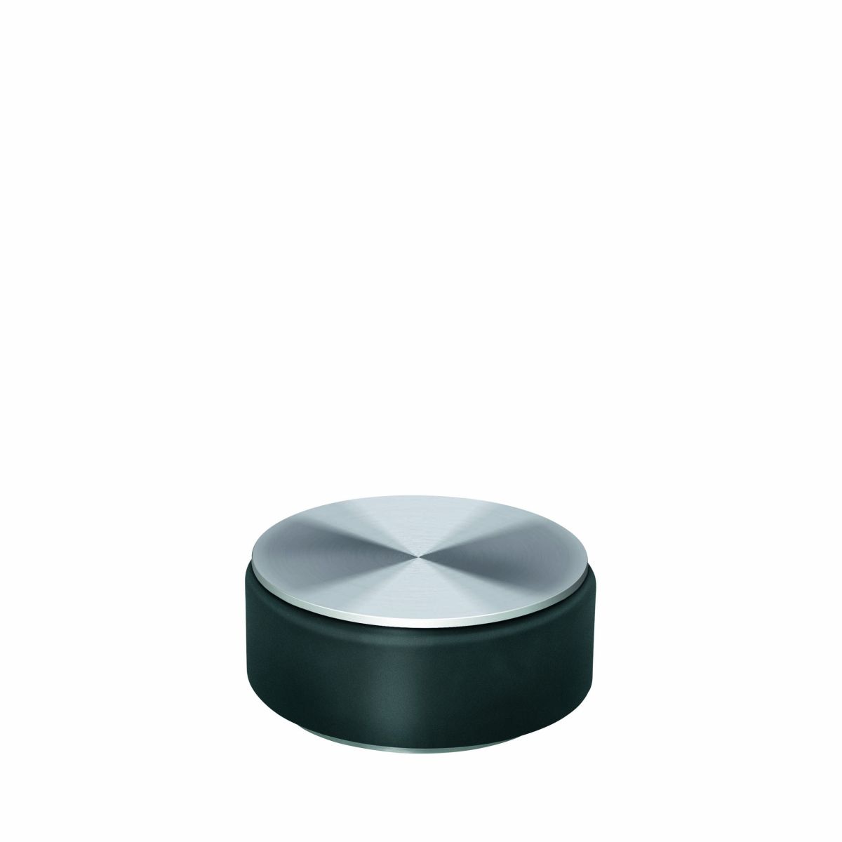 Türstopper mit einem Gewicht von 1 kg. Das Produkt besteht aus Edelstahl und Gummi, das sich an den Seiten und an der Unterseite befindet.