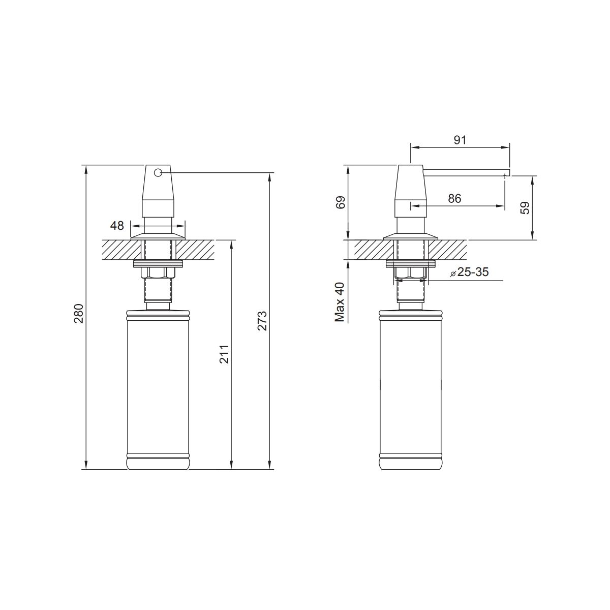 - Öffnung für den Spender 35 mm