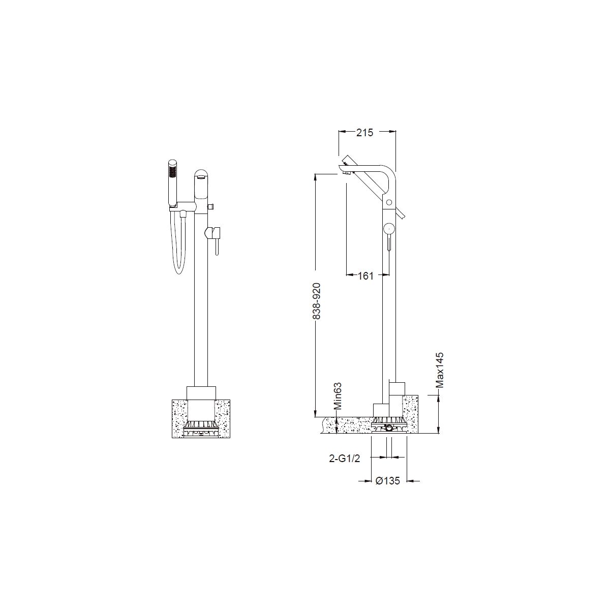 - Einhebel-Wannen- und Duscharmatur, bodenstehend