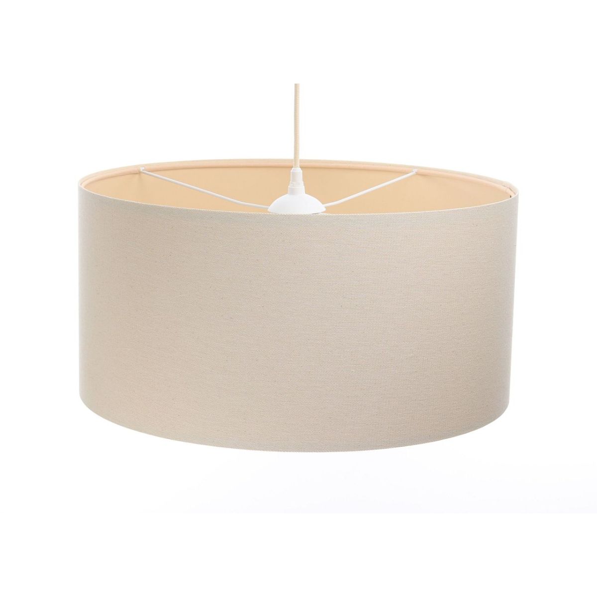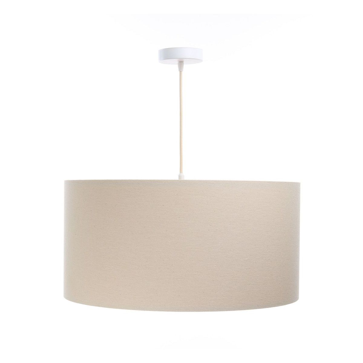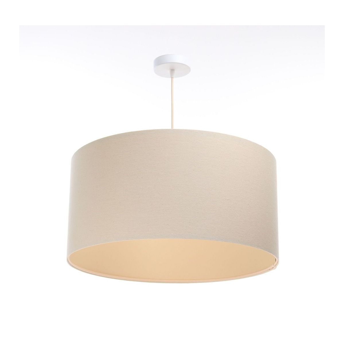 Der Lampenschirm besteht aus natürlichem Leinenstoff, der auf PVC-Kunststoff mit cremefarbenem und beigem Innenbereich aufgebracht ist. Parameter der Fassung: 1 x E27 max. 60 W. Parameter der Deckenrosette: Metall, pulverbeschichtet, Maße 10 cm x 2 cm. Kabellänge: max. 80 cm, verstellbar. Farbe des Kabels: cremefarben. LED-Glühbirnen können verwendet werden.
