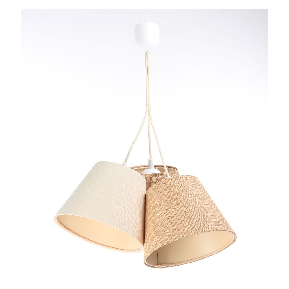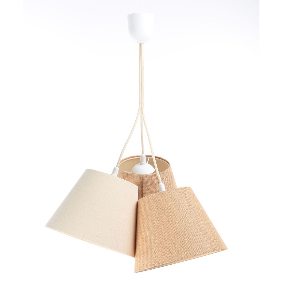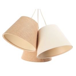 Die Lampenschirme bestehen aus natürlichem Leinen- und Jutegewebe, das auf PVC-Kunststoff mit cremefarbenem und beigem Innenbereich aufgebracht ist. Parameter der Fassung: 3 x E27 max. 40 W Kabellänge: max. 80 cm, verstellbar. Durchmesser eines einzelnen Kegels: 25 cm / 15 cm. Höhe 20 cm Farbe des Kabels: cremefarben. LED-Glühbirnen können verwendet werden.