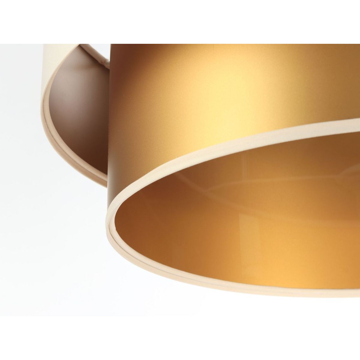 Die Lampe besteht aus PVC-Kunststoff, der mit einem glatten, cremefarbenen Satinstoff überzogen ist. Das Innere der Lampe ist goldfarben. Parameter der Fassung: 1 x E27 max. 60 W. Parameter der Deckenrosette: Kunststoff, Abmessungen 10 cm x 2 cm. Kabellänge: max. 80 cm, verstellbar. Kabelfarbe: weiß. LED-Glühbirnen können verwendet werden.