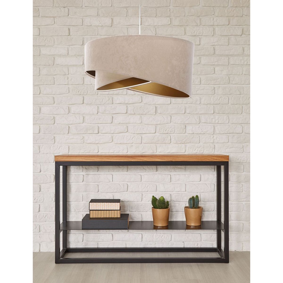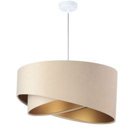 Lampenschirm aus Stoff (Mikrofaser) auf PVC-Kunststoff mit goldener Mitte. Parameter der Fassung: 1 x E27 max. 60 Watt. Parameter der Deckenrosette: Kunststoff, Abmessungen 10 cm x 2 cm. Kabellänge: max. 80 cm, verstellbar. Farbe des Kabels: Transparent. LED-Glühbirnen können verwendet werden.