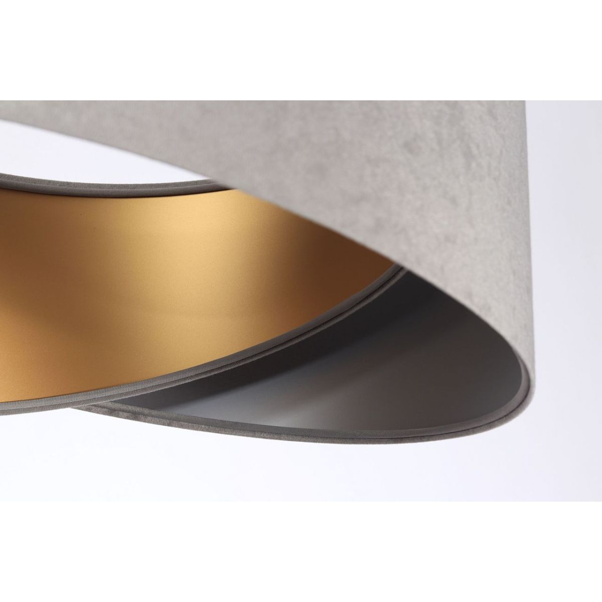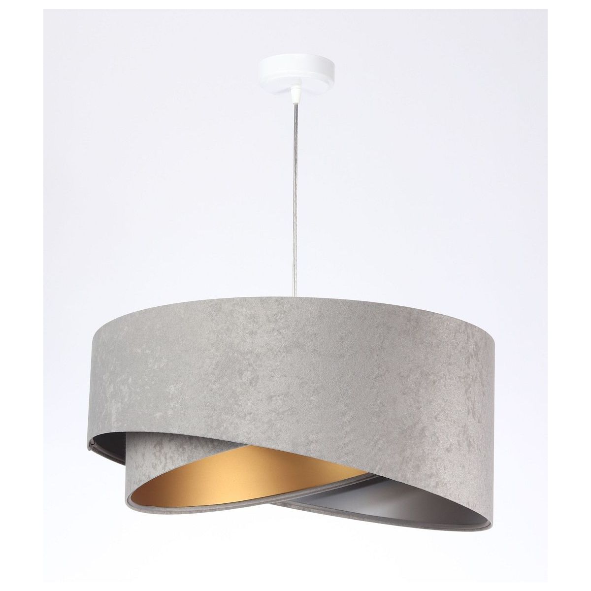Lampenschirm aus Stoff (Mikrofaser) auf PVC-Kunststoff mit silber-goldener Mitte. Parameter der Fassung: 1 x E27 max. 60 W. Parameter der Deckenrosette: Metall, pulverbeschichtet, Abmessungen 10 cm x 2 cm. Kabellänge: max. 80 cm, verstellbar. Farbe des Kabels: transparent. LED-Glühbirnen können verwendet werden.