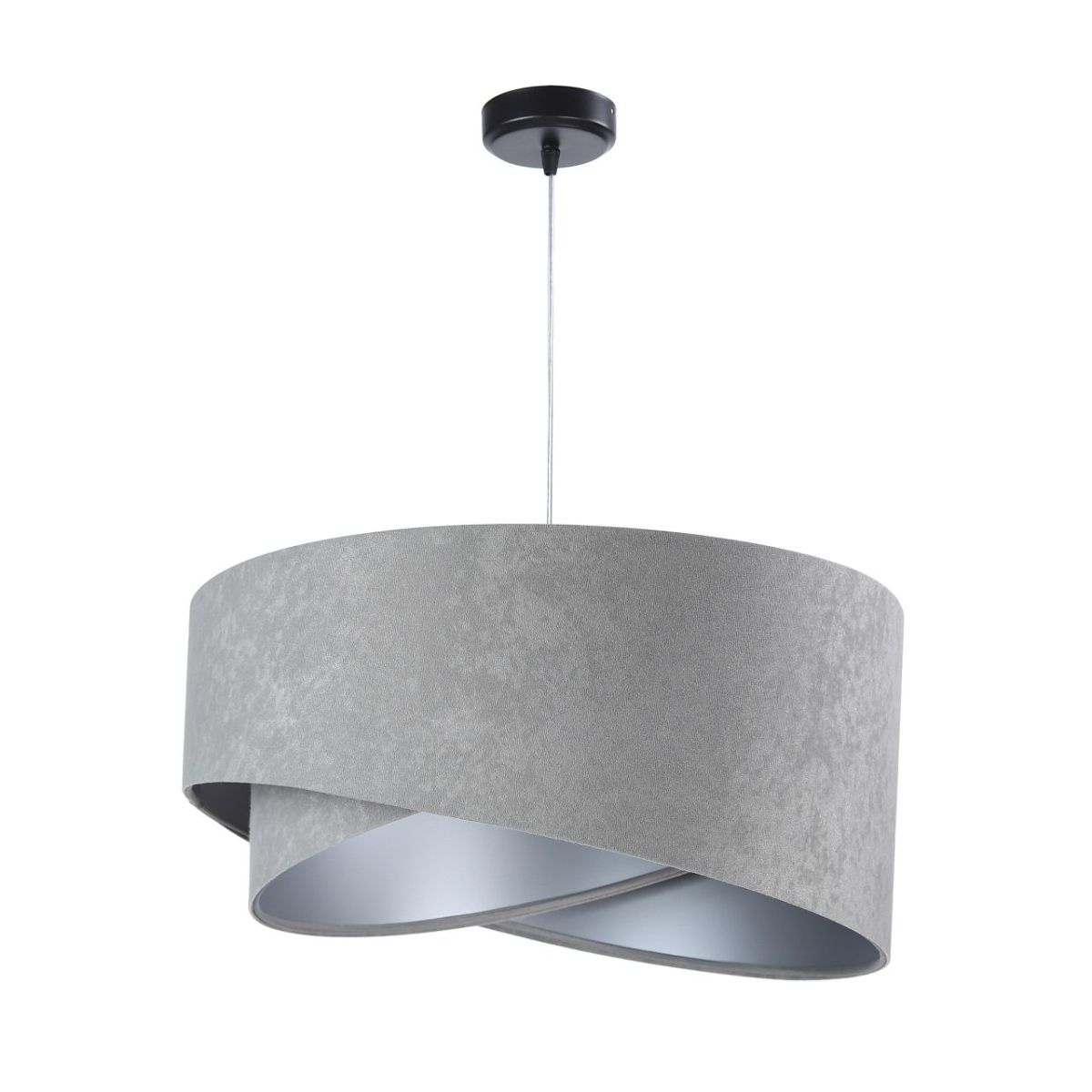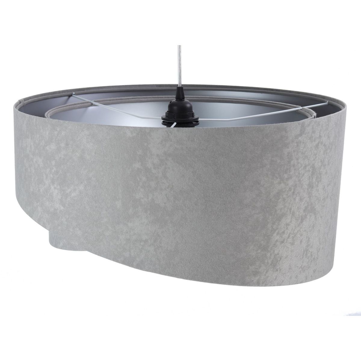 Lampenschirm aus Stoff (Mikrofaser) auf PVC-Kunststoff mit silbernem Mittelteil. Parameter der Fassung: 1 x E27 max. 60 W. Parameter der Deckenrosette: Kunststoff, Abmessungen 10 cm x 2 cm. Kabellänge: max. 80 cm, verstellbar. Farbe des Kabels: transparent. LED-Glühbirnen können verwendet werden.