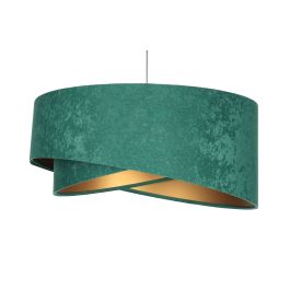 Lampenschirm aus Stoff (Mikrofaser) auf PVC-Kunststoff mit goldener Mitte. Parameter der Fassung: 1 x E27 max. 60 W. Parameter der Deckenrosette: Kunststoff, Maße 10 cm x 2 cm. Kabellänge: max. 80 cm, verstellbar. Farbe des Kabels: transparent. LED-Glühbirnen können verwendet werden.