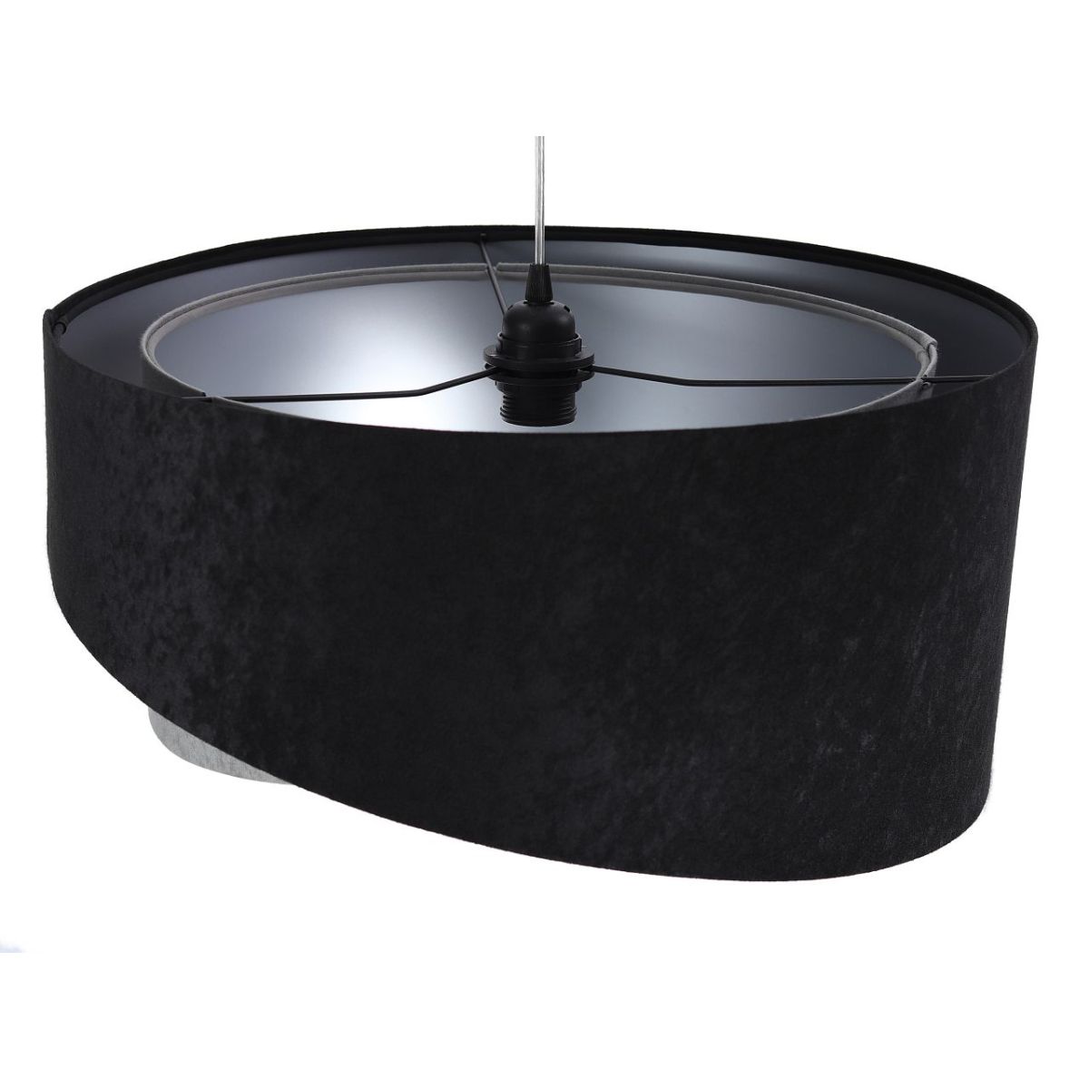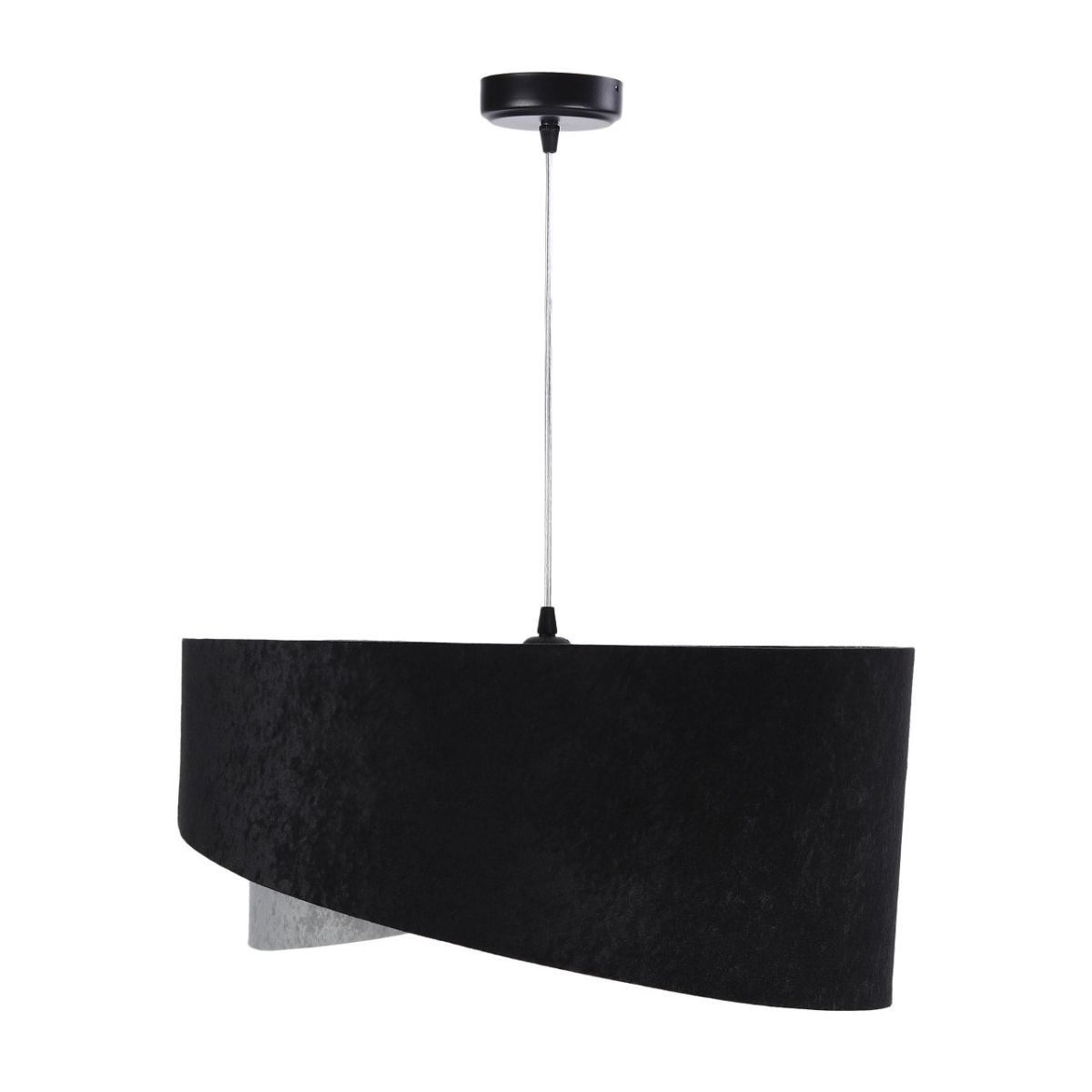 Lampenschirm aus Stoff (Mikrofaser) auf PVC-Kunststoff mit silbernem Mittelteil. Parameter der Fassung: 1 x E27 max. 60 W. Parameter der Deckenrosette: Kunststoff, Maße 10 cm x 2 cm. Kabellänge: max. 80 cm, verstellbar. Farbe des Kabels: transparent. LED-Glühbirnen können verwendet werden.