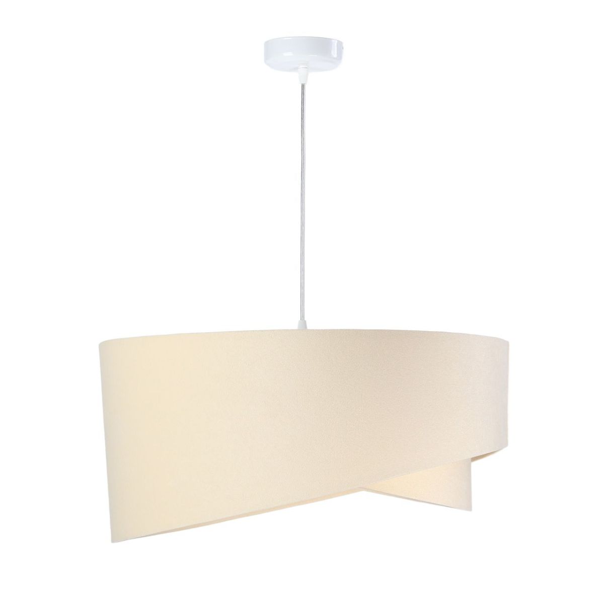 Lampenschirm aus Veloursstoff (Mikrofaser) auf PVC-Kunststoff mit weißer Mitte. Parameter der Fassung: 1 x E27 max. 60 W. Parameter der Deckenrosette: Kunststoff, Abmessungen 10 cm x 2 cm. Kabellänge: max. 80 cm, verstellbar. Farbe des Kabels: transparent. LED-Glühbirnen können verwendet werden.
