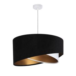 Lampenschirm aus Stoff (Mikrofaser) auf PVC-Kunststoff mit goldener Mitte. Parameter der Fassung: 1 x E27 max. 60 W. Parameter der Deckenrosette: Kunststoff, Abmessungen 10 cm x 2 cm. Kabellänge: max. 80 cm, verstellbar. Farbe des Kabels: transparent. LED-Glühbirnen können verwendet werden.