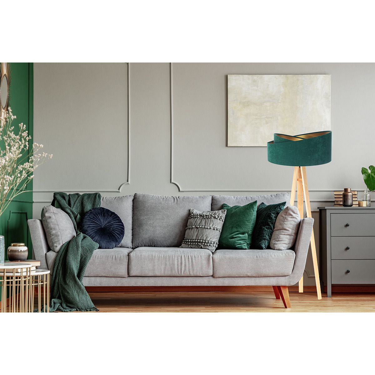 BPS Koncept Galaxy Stehlampe 1x60 W grün-gold-holz 060P-003