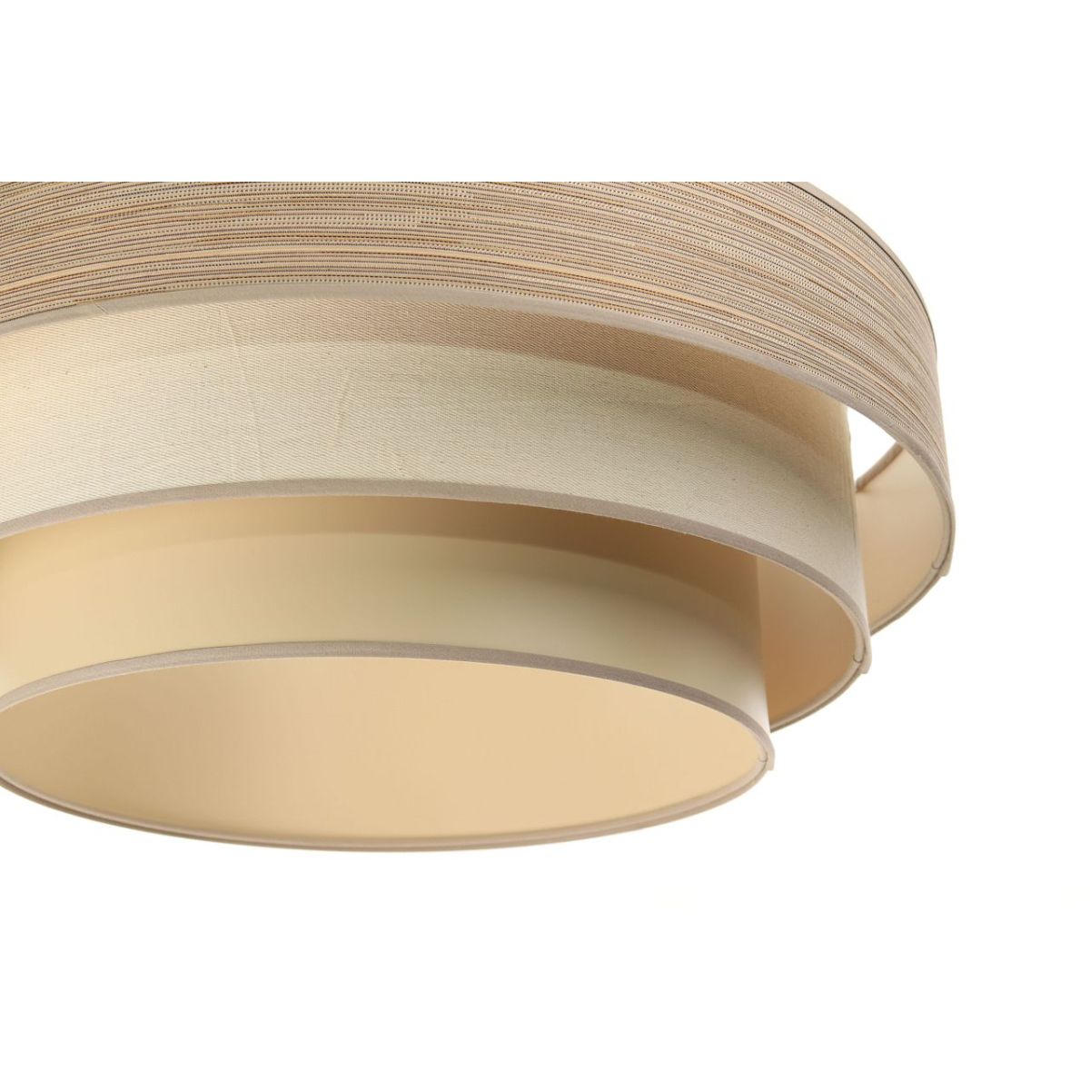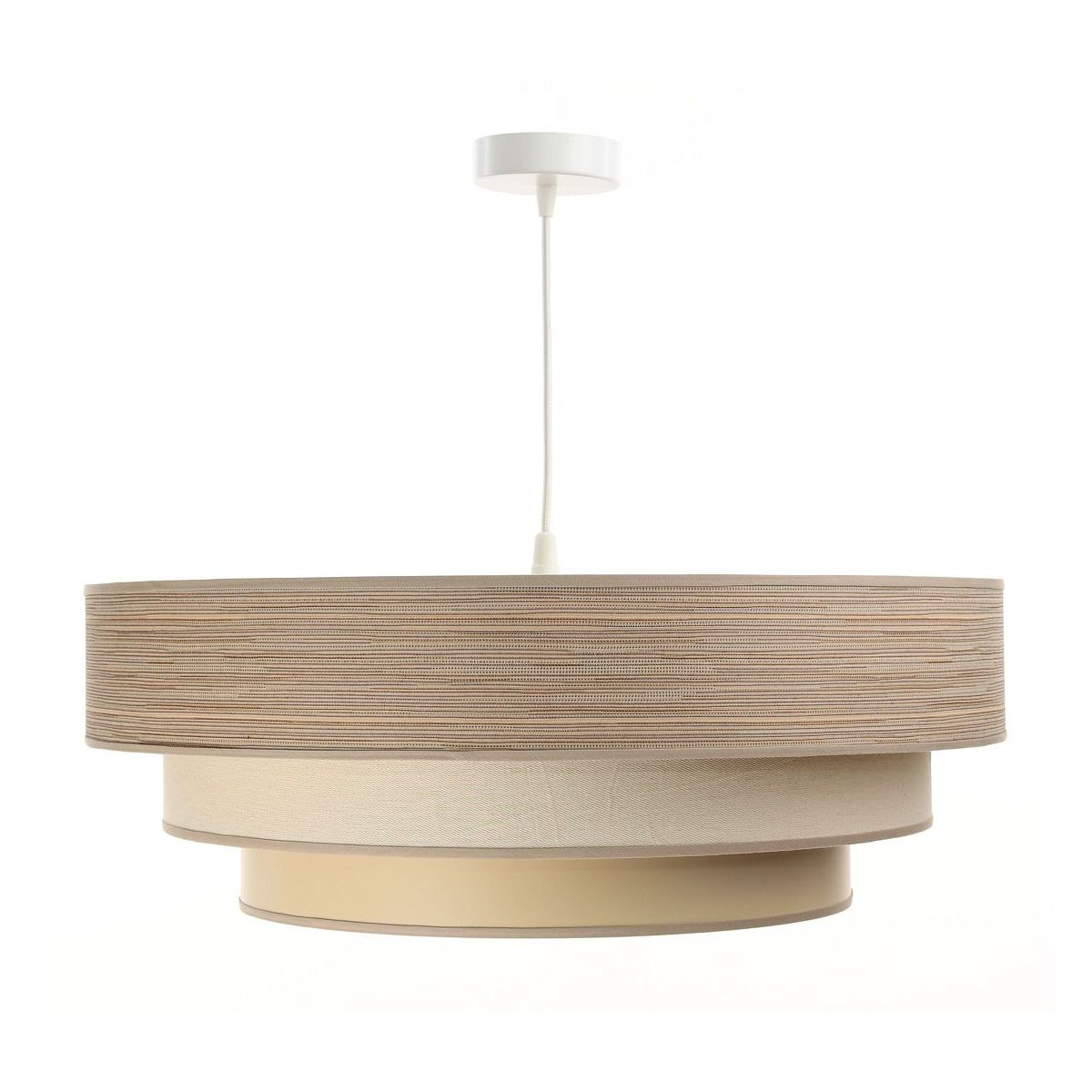 Strukturelles Gewebe mit natürlichem Aussehen auf PVC-Kunststoff mit mattcremefarbenem Kern. Parameter der Fassung: 1 x E27 max. 60 W. Parameter der Deckenkappe: Kunststoff, Abmessungen 10 cm x 2 cm. Kabellänge: max. 80 cm, verstellbar. Kabelfarbe: weiß. LED-Glühbirnen können verwendet werden.