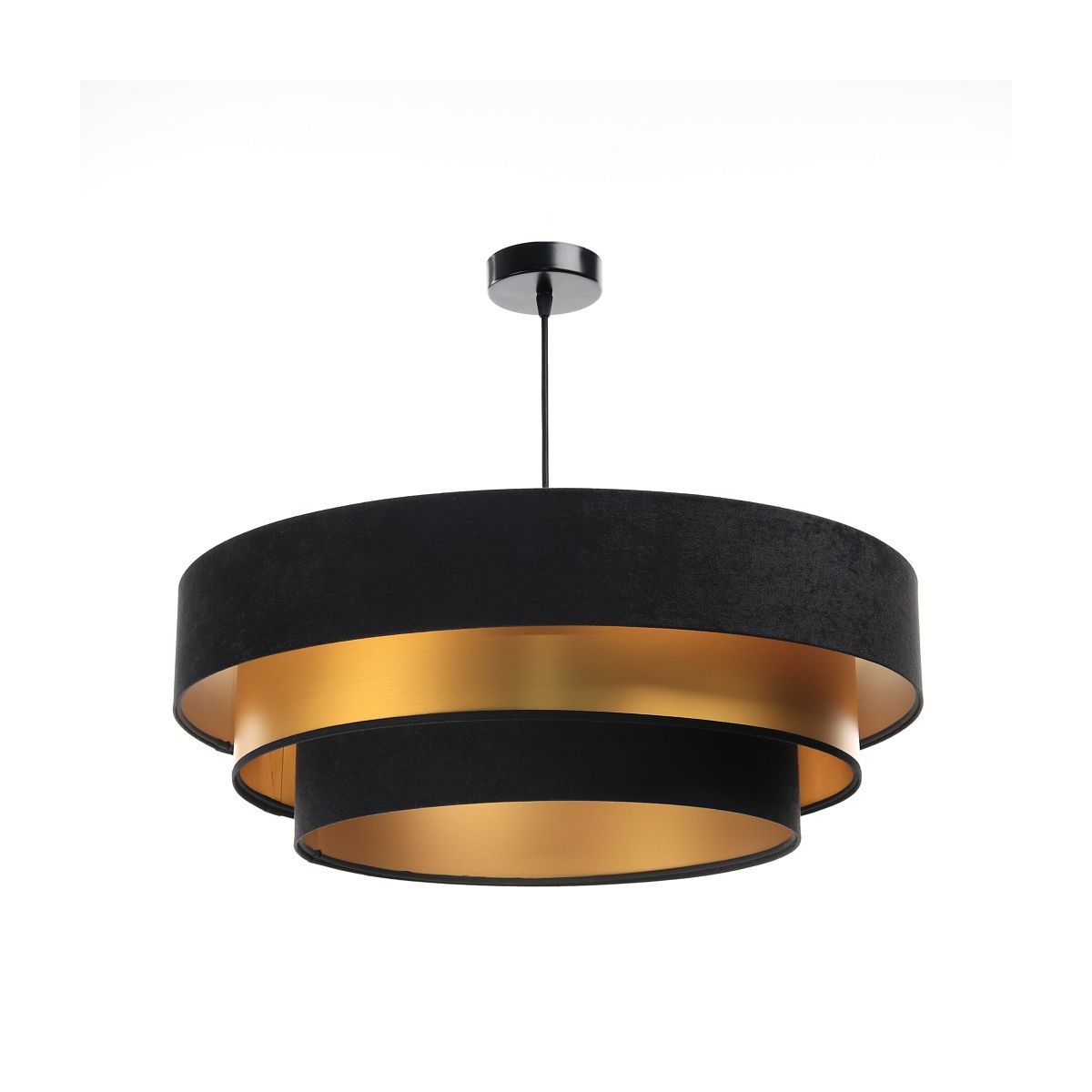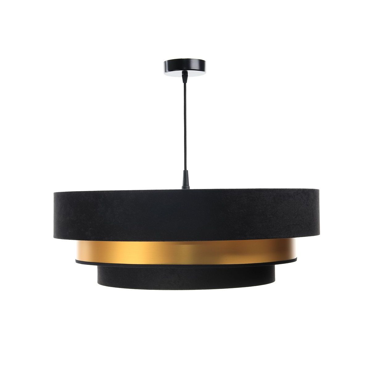 Lampenschirm aus Stoff (Mikrofaser) auf PVC-Kunststoff mit goldener Mitte. Parameter der Fassung: 1 x E27 max. 60 W. Parameter der Deckenkappe: Kunststoff, Abmessungen 10 cm x 2 cm. Kabellänge: max. 80 cm, verstellbar. Farbe des Kabels: schwarz. LED-Glühbirnen können verwendet werden.