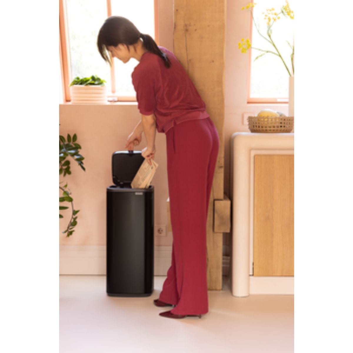 Ja, ein Mülleimer kann schön sein! Der Mülleimer Bo Touch von Brabantia verbindet stilvolles Design mit 30 Litern Fassungsvermögen. Er wurde mit Liebe zum Zuhause und Sorge um unseren Planeten hergestellt. Dank seiner rechteckigen Form passt dieser platzsparende Mülleimer perfekt in eine Ecke oder an eine Wand. Seine weiche Öffnung sorgt für eine einfache und leichte Handhabung – mit nur einer Hand! Der integrierte Tragegriff ermöglicht ein einfaches Transportieren des Mülleimers zwischen verschiedenen Räumen. Go Bo!