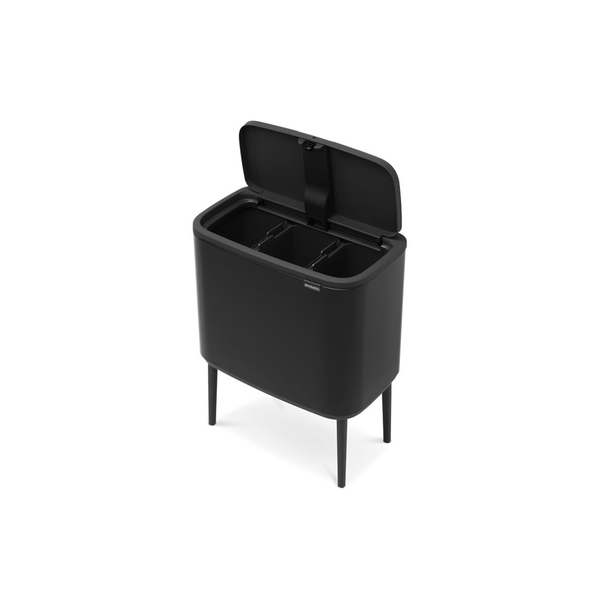 Suchen Sie nach einer schönen Lösung für die Mülltrennung? Der Bo Touch-Abfalleimer verbindet schönes Design mit allen Funktionen, die die Mülltrennung zu Hause erleichtern. Er ist mit drei herausnehmbaren Innenbehältern für drei Arten von Abfall ausgestattet. Er passt sich perfekt an die Wand an (nimmt wenig Platz ein) und ist dank seiner verstellbaren rutschfesten Füße sehr stabil. Der einzigartige, weiche Verschluss sorgt für eine einfache und leichte Bedienung per Handberührung.