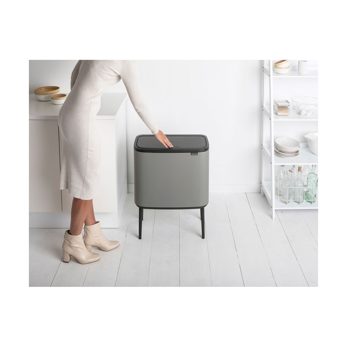 Suchen Sie nach einer schönen Lösung für die Mülltrennung? Dieser 34-Liter-Behälter Brabantia Bo Touch Bin sieht aus wie ein Möbelstück und bietet alles, was Sie für eine einfache Mülltrennung benötigen. Er verfügt über zwei herausnehmbare Innenbehälter für zwei Arten von Abfall, schmiegt sich perfekt an die Wand an und ist dank seiner verstellbaren, rutschfesten Füße sehr stabil. Die Soft-Touch-Öffnung sorgt für eine einfache und leichte Bedienung per Handberührung.