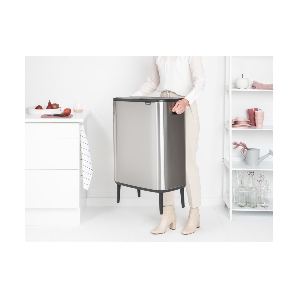 Suchen Sie einen Mülleimer mit tollem Design und großem Fassungsvermögen? Dieser Brabantia Bo Touch Bin Hi ist genau das Richtige! Dieser 60-Liter-XXL-Schönling hat vier elegante Beine, ein sanftes Öffnungssystem und integrierte Griffe. Er öffnet sich bei der leichtesten Berührung und wurde mit Liebe zu Ihrem Zuhause und Sorge um unseren Planeten entworfen. Eine große Hilfe für jeden Haushalt.