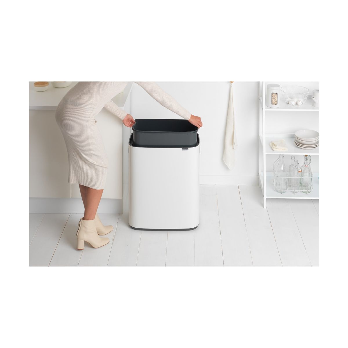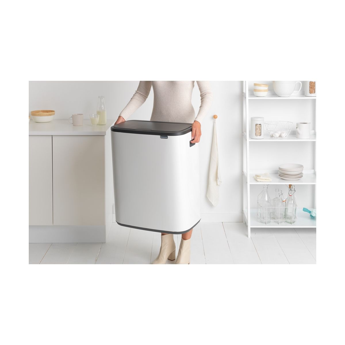 Suchen Sie eine XXL-Abfalllösung, die zu Ihrem Stil passt? Der große 60-Liter-Behälter Brabantia Bo Touch Bin sieht gut aus und ist ein Talent im Abfallmanagement. Er ist mit einem herausnehmbaren Kunststoff-Inneneimer und integrierten Griffen ausgestattet. Er passt perfekt an die Wand und spart Platz. Der weiche Deckel sorgt für eine einfache und leichte Handhabung per Handberührung.