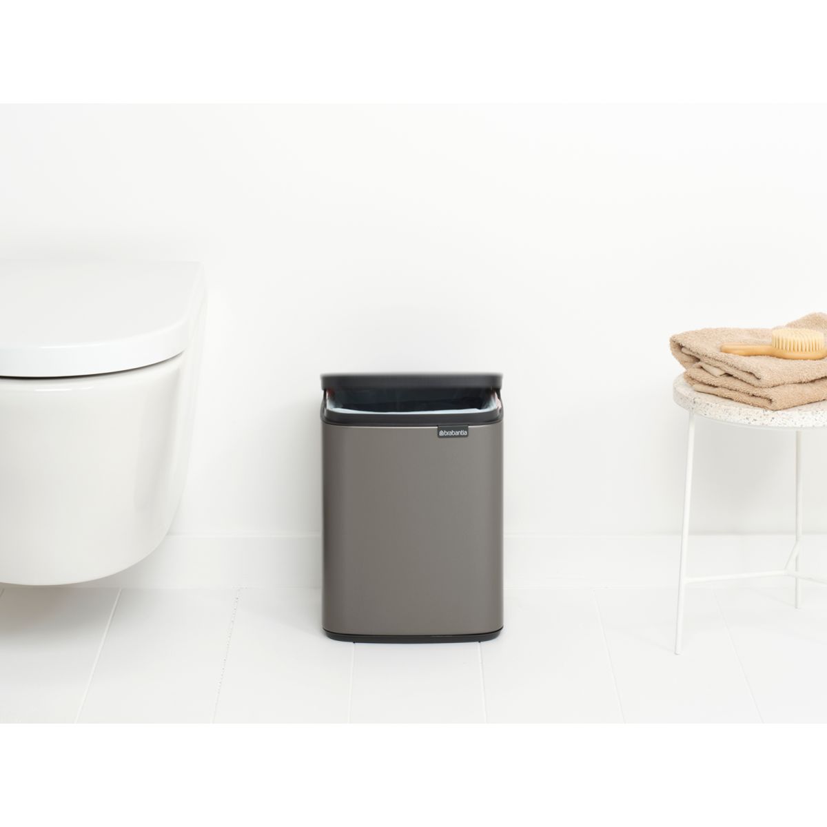 Nicht zu groß, nicht zu klein – genau richtig. Hier ist der Bo7 l-Abfalleimer von Brabantia für Sie! Sie können ihn in die Ecke stellen oder an die Wand hängen. Und das an jedem beliebigen Ort, denn der Deckel lässt sich leicht von links, rechts und vorne öffnen. Nie wieder müssen Sie sich bücken, um etwas hineinzuwerfen. Ein Traum von einem Abfalleimer!