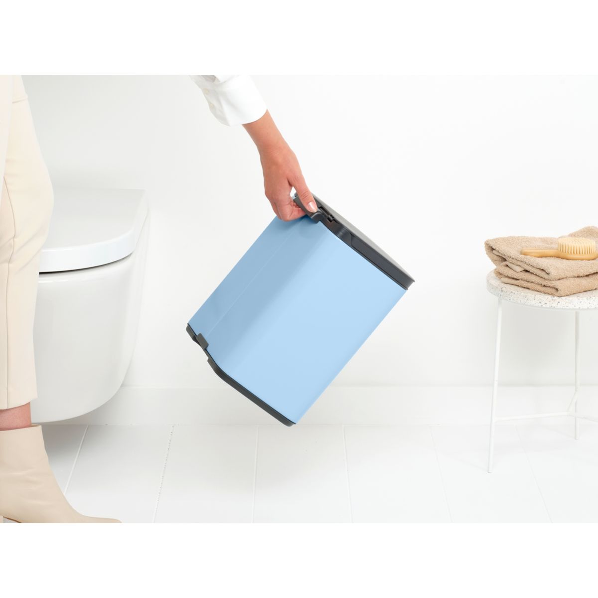 Nicht zu groß, nicht zu klein – genau richtig. Hier ist der Bo7 l-Abfalleimer von Brabantia für Sie! Sie können ihn in die Ecke stellen oder an die Wand hängen. Und das an jedem beliebigen Ort, denn der Deckel lässt sich leicht von links, rechts und vorne öffnen. Nie wieder müssen Sie sich bücken, um etwas hineinzuwerfen. Ein Traum von einem Abfalleimer!