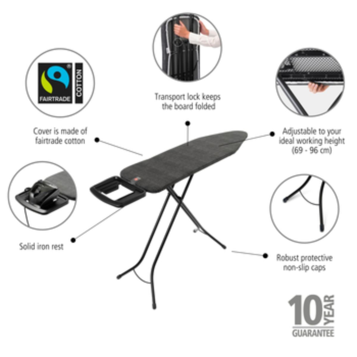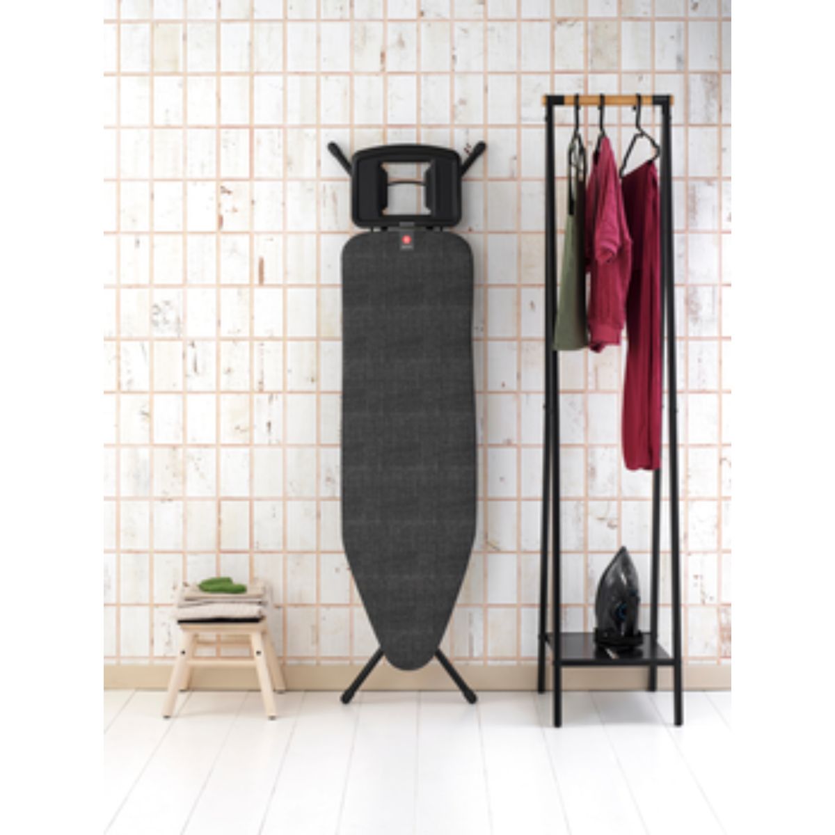 Das Bügelbrett von Brabantia mit stabiler Ablage für Dampfbügeleisen bietet alles, was Sie von einem Bügelbrett erwarten können. Dieses beliebte Bügelbrett ist robust, stabil und für einfaches Bügeln mit jedem Bügeleisen konzipiert. Sie verbrennen sich nicht!