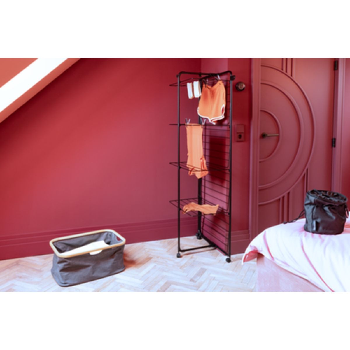 Sparen Sie Strom, indem Sie Ihre Wäsche auf natürliche Weise trocknen, und sparen Sie Platz, indem Sie sie auf dem HangOn Tower von Brabantia aufhängen! Mit 30 Metern flexibler Trockenfläche und zusätzlichen Haken und Halterungen für Kleiderbügel nimmt dieser intelligente Wäscheständer nur wenig Platz auf dem Boden ein, wodurch Sie viel Platz sparen. Der Wäscheständer verfügt über vier Trockenebenen, die bei Bedarf zusammengeklappt werden können, sodass er sich auch zum Trocknen sehr langer Kleidungsstücke wie Hosen eignet. Vier Räder ermöglichen das Drehen und Bewegen des Trockners. Nach dem Trocknen der Wäsche kann er flach zusammengeklappt werden, was eine kompakte Aufbewahrung ermöglicht. Transportverriegelungen halten den Rahmen an seinem Platz und dienen zusätzlich als Haken. Mit dem Kauf dieses Wäschetrockners unterstützen Sie auch die Organisation WeForest bei ihrer Mission, mehr Bäume zu pflanzen. Möchten Sie ihn nutzen?