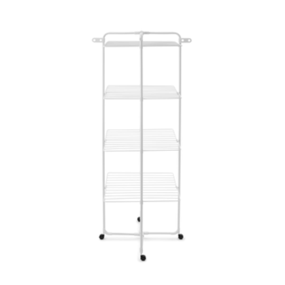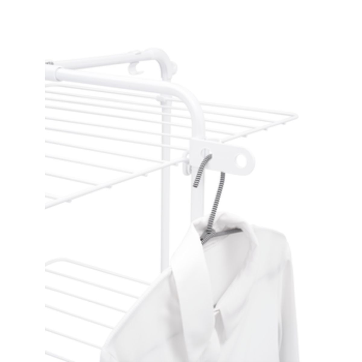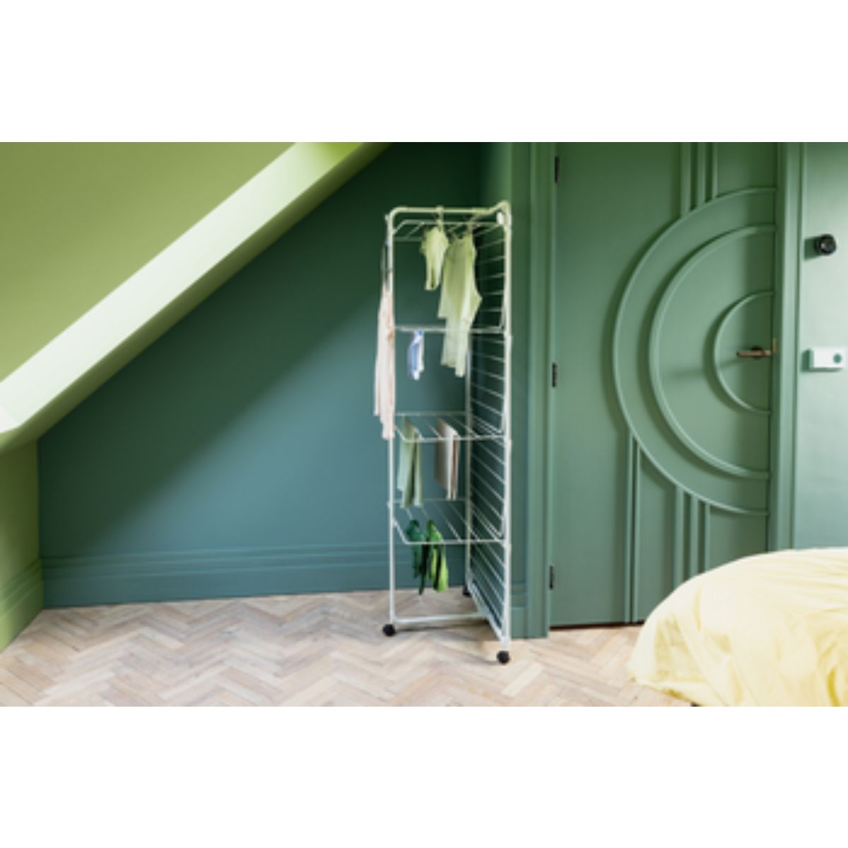 Sparen Sie Strom, indem Sie Ihre Wäsche auf natürliche Weise trocknen, und sparen Sie Platz, indem Sie sie auf dem HangOn Tower von Brabantia aufhängen! Mit 30 Metern flexibler Trockenfläche und zusätzlichen Haken und Halterungen für Kleiderbügel nimmt dieser intelligente Wäscheständer nur wenig Platz auf dem Boden ein, wodurch Sie viel Platz sparen. Der Wäscheständer verfügt über vier Trockenebenen, die bei Bedarf zusammengeklappt werden können, sodass er sich auch zum Trocknen sehr langer Kleidungsstücke wie Hosen eignet. Vier Rollen ermöglichen das Drehen und Bewegen des Trockners. Nach dem Trocknen der Wäsche kann er flach zusammengeklappt werden, was eine kompakte Aufbewahrung ermöglicht. Transportverriegelungen halten den Rahmen an seinem Platz und dienen zusätzlich als Haken. Mit dem Kauf dieses Wäschetrockners unterstützen Sie auch die Organisation WeForest bei ihrer Mission, mehr Bäume zu pflanzen. Möchten Sie ihn nutzen?