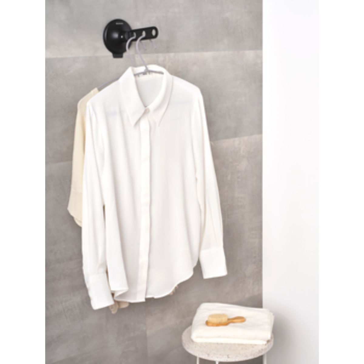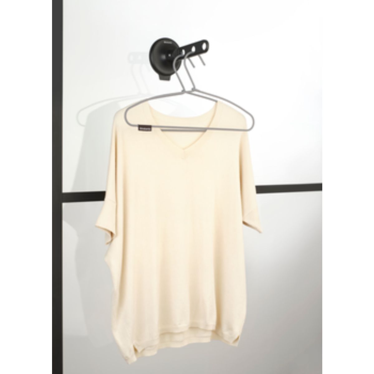Das Lüften von Kleidung spart Waschgänge. Mit dem Brabantia Kleiderhaken mit Saugnapf können Sie Ihre Kleidung überall aufhängen, wo Sie möchten. Dieser clevere Haken kann 3 Kleiderbügel und bis zu 2 Kilogramm tragen. Kleben Sie ihn einfach an ein offenes Fenster, eine (Dusch-)Tür oder Fliesen, um Ihre Kleidung zu lüften. Er eignet sich auch hervorragend zum Trocknen von Blusen auf Kleiderbügeln!