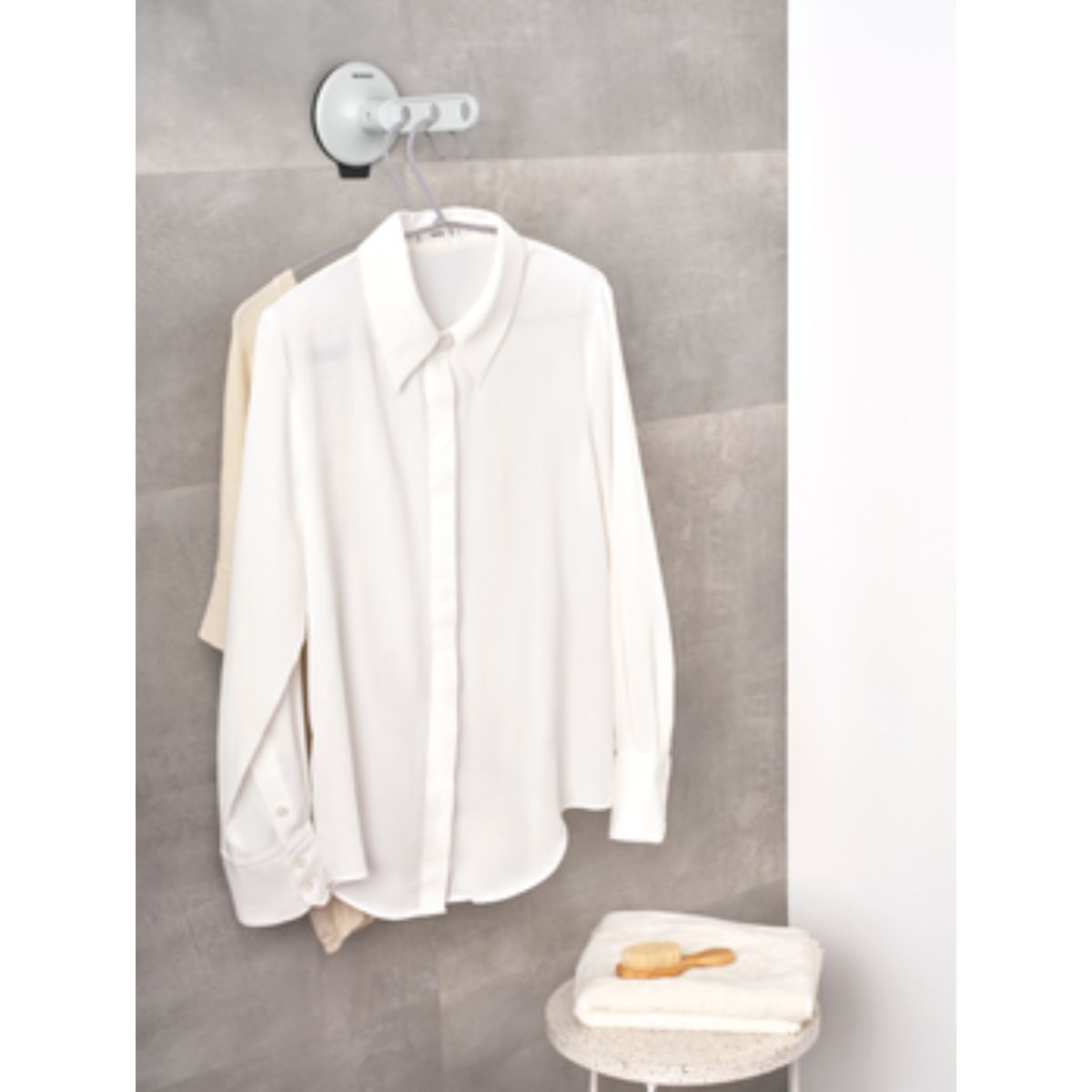 Das Lüften von Kleidung spart Waschgänge. Mit dem Brabantia Kleiderhaken mit Saugnapf können Sie Ihre Kleidung überall aufhängen, wo Sie möchten. Dieser clevere Haken kann 3 Kleiderbügel und bis zu 2 Kilogramm tragen. Kleben Sie ihn einfach an ein offenes Fenster, eine (Dusch-)Tür oder Fliesen, um Ihre Kleidung zu lüften. Er eignet sich auch hervorragend zum Trocknen von Blusen auf Kleiderbügeln!