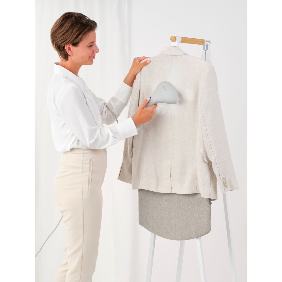 Das Dampfbügeln von Kleidung beseitigt lästige Falten und erfordert weniger Zeit und Mühe als das Bügeln. Und dank des Linn-Bügeltisches von Brabantia geht das Dampfbügeln von Kleidung noch schneller und bequemer. Der Bügeltisch erleichtert das Glätten von Falten und sorgt für bessere Ergebnisse. Gut zu wissen: Das Modell wurde so konzipiert, dass es auf alle stehenden Linn-Kleiderständer passt. Der stilvolle Linn-Kleiderständer lässt sich in ein multifunktionales Möbelstück zum Trocknen, Lüften und Dampfbügeln von Kleidung verwandeln. Befestigen Sie das Brett einfach mit Klettbändern, stellen Sie es auf die ideale Arbeitshöhe ein und schon können Sie mit dem Bügeln beginnen!