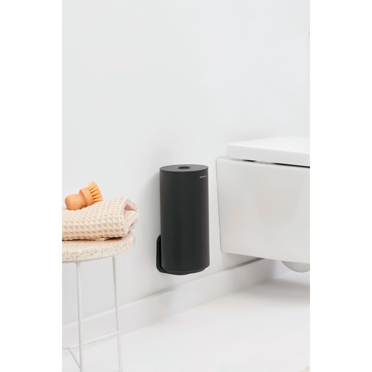 Mit diesem minimalistischen Toilettenpapierhalter MindSet von Brabantia sorgen Sie auch im kleinsten Raum Ihres Zuhauses für einen hohen Stilstandard. Bequeme Aufbewahrung von zwei Ersatzrollen Toilettenpapier. Sein geschlossener Korpus schützt die Rollen vor Staub und Spritzern – sehr hygienisch und sehr diskret. Ist es Zeit, die Rollen zu wechseln? Nehmen Sie eine Rolle mit dem praktischen Hebesystem heraus. Stil, Hygiene, Komfort.