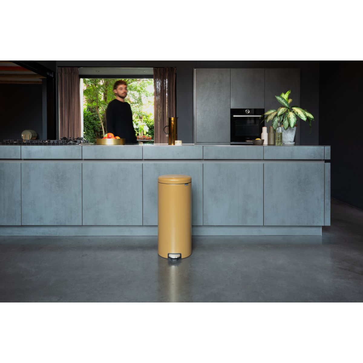 Der NewIcon Pedal Bin (30 l) von Brabantia ist dank seiner Metallic-Beschichtung in einem warmen Farbton und seinem stilvollen Pedal aus Edelstahl noch kultiger geworden. Der Mülleimer verleiht Ihrem Interieur Eleganz und Luxus und ist dank seines rutschfesten Bodens und seiner Kippschutzvorrichtung sehr stabil. Die einzigartige Soft-Close-Funktion sorgt zudem für ein sanftes Schließen. Selbstverständlich ist der NewIcon leicht zu öffnen, geruchsneutral, hygienisch und leicht zu reinigen. 30 Liter zeitloses Design.
