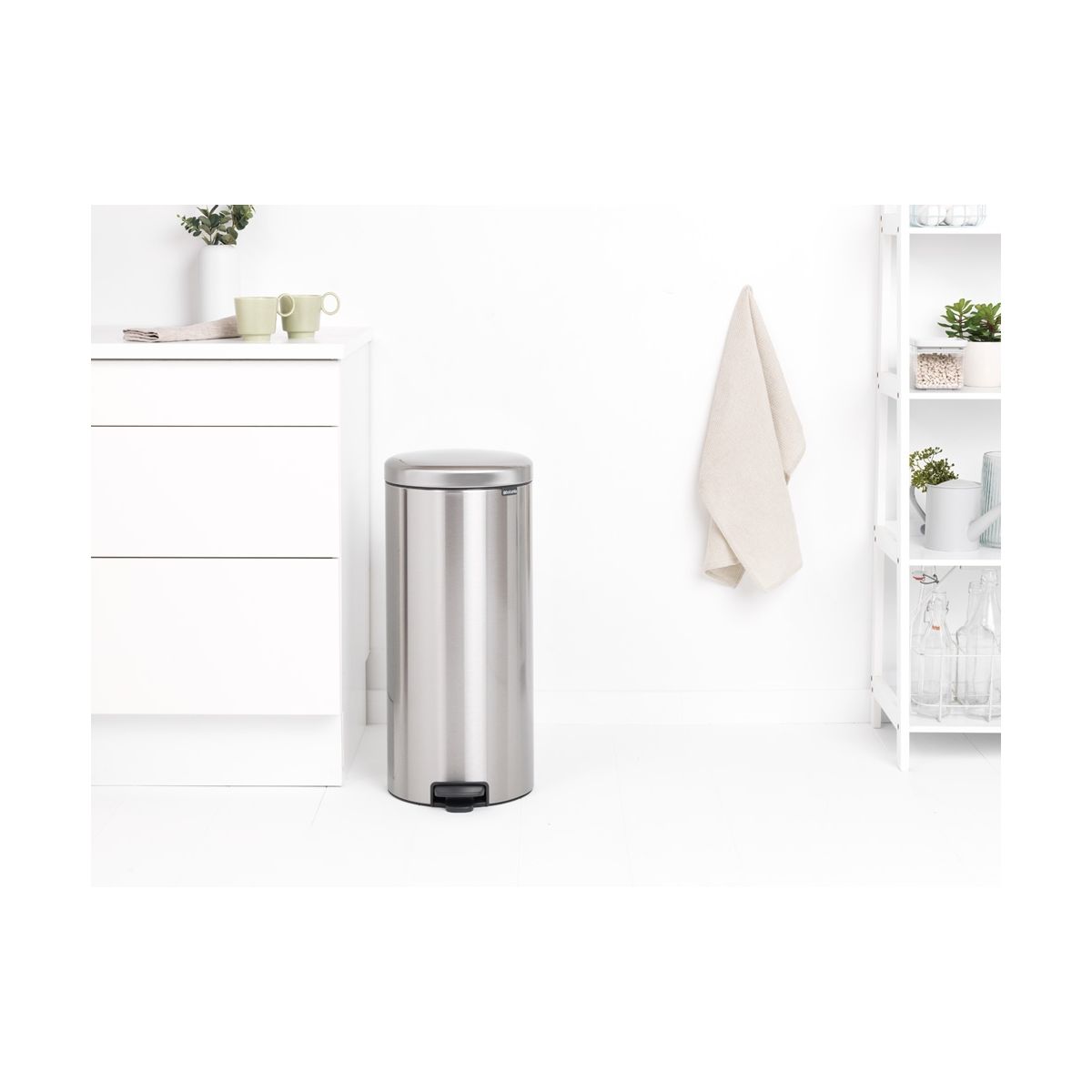 Der 30-Liter-Abfalleimer NewIcon von Brabantia hat ein kultiges Design und ist zuverlässig. Er ist robust und stabil dank seines rutschfesten Bodens und seines Kippschutzes. Dank seines einzigartigen Verschlusses lässt er sich leicht schließen. Der NewIcon-Behälter ist hygienisch, dicht, leicht zu öffnen und sauber zu halten. Ideal für Ihre Küche oder jeden anderen Raum, in dem 30 Liter zeitloses Design nützlich sein könnten.