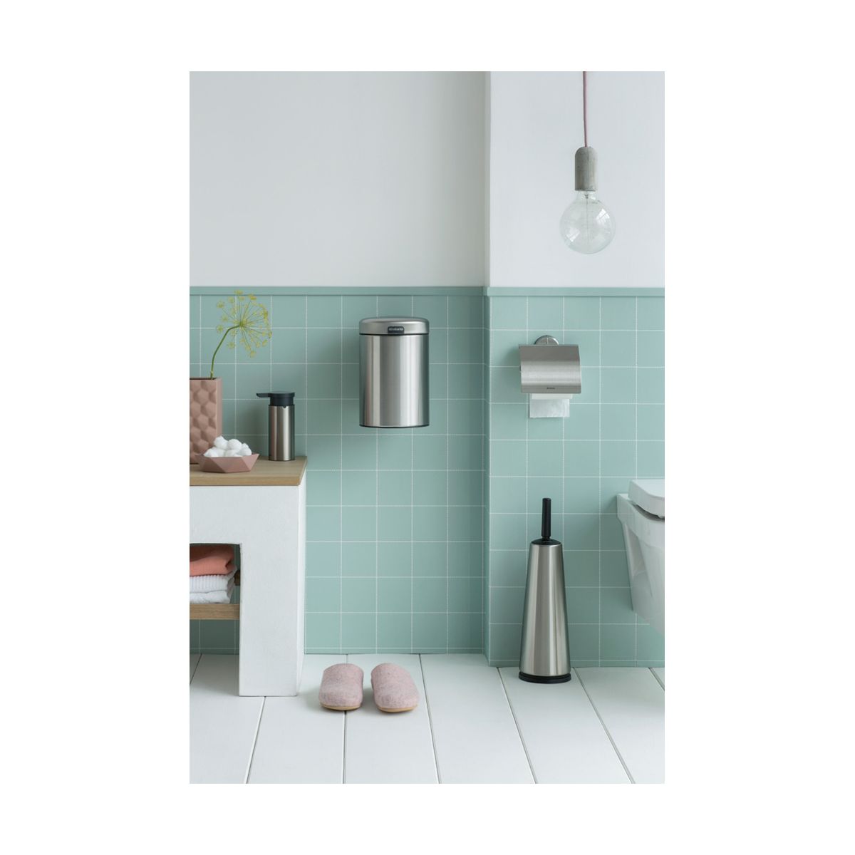 - Der Toilettenpapierhalter hält das Toilettenpapier diskret außer Sichtweite.