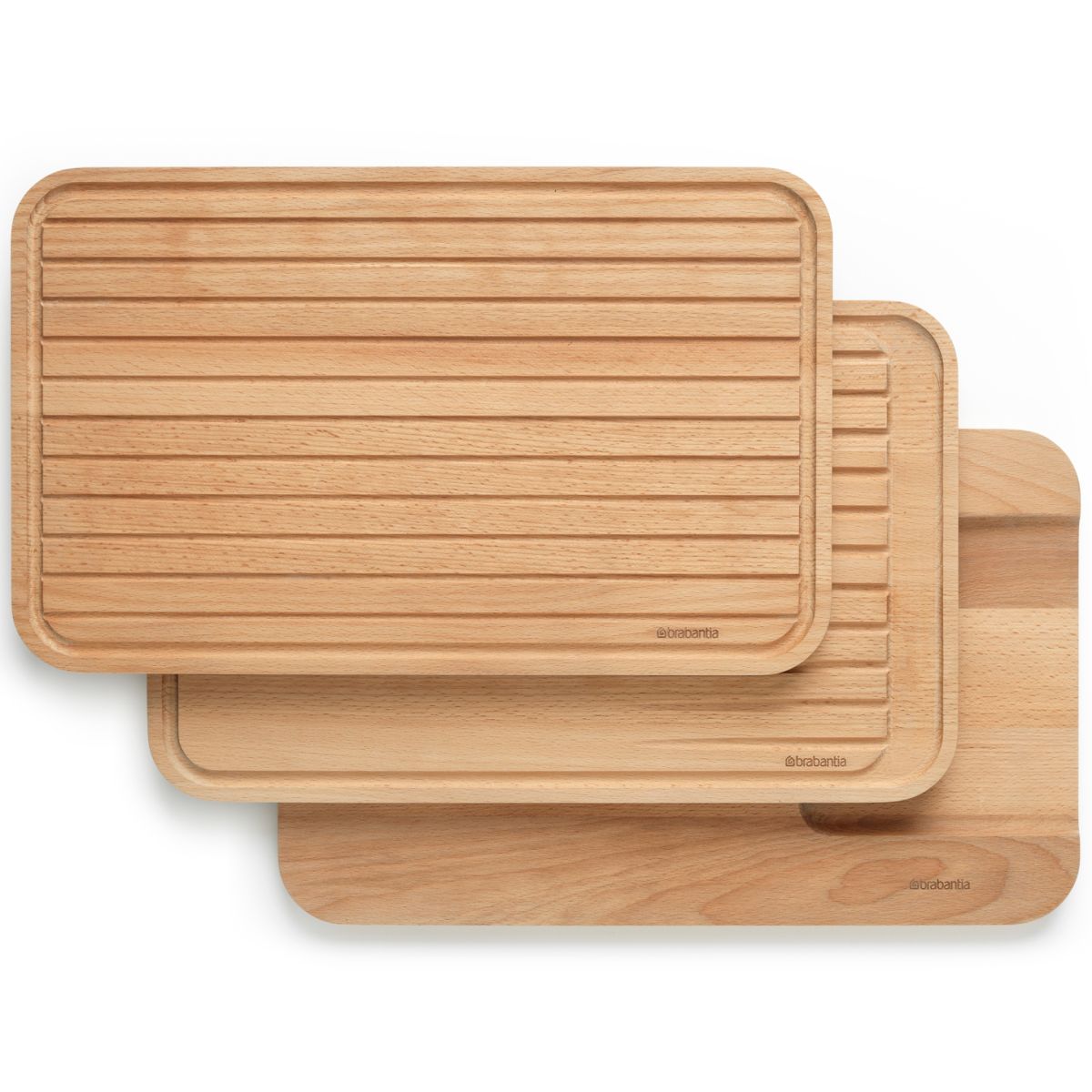 Das 3-teilige Set Holzschneidebretter Profile von Brabantia enthält alles, was Sie zum Schneiden benötigen. Ein Brett für Gemüse, eines für Brot und eines für Fleisch. Alle Bretter sind aus umweltfreundlichem Buchenholz gefertigt und beidseitig verwendbar. Alles auf das Brett!