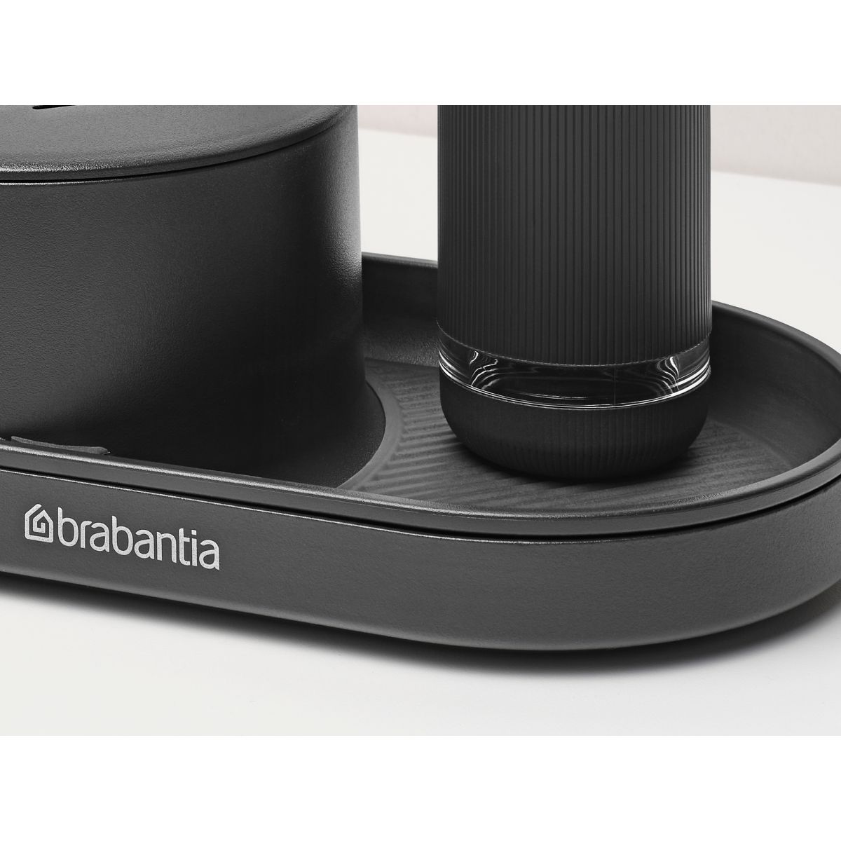 Nutzen Sie das Set der Marke Brabantia für Geschirrspül- und Trocknungsutensilien. Damit sorgen Sie ganz einfach für Ordnung auf den Arbeitsflächen rund um die Spüle. Es bietet Platz für Geschirrtücher, Schwämme und Bürsten. Das Gitter sorgt für eine gute Luftzirkulation und verhindert so muffige Gerüche. Das Set bietet auch Platz für einen Geschirrtuchhalter. Das gesamte Set verfügt über rutschfeste Unterlagen und einen speziellen Platz für Seifen- und Spülmittelspender. Das lange Gitter dient zum Abstellen von trocknenden Gegenständen.