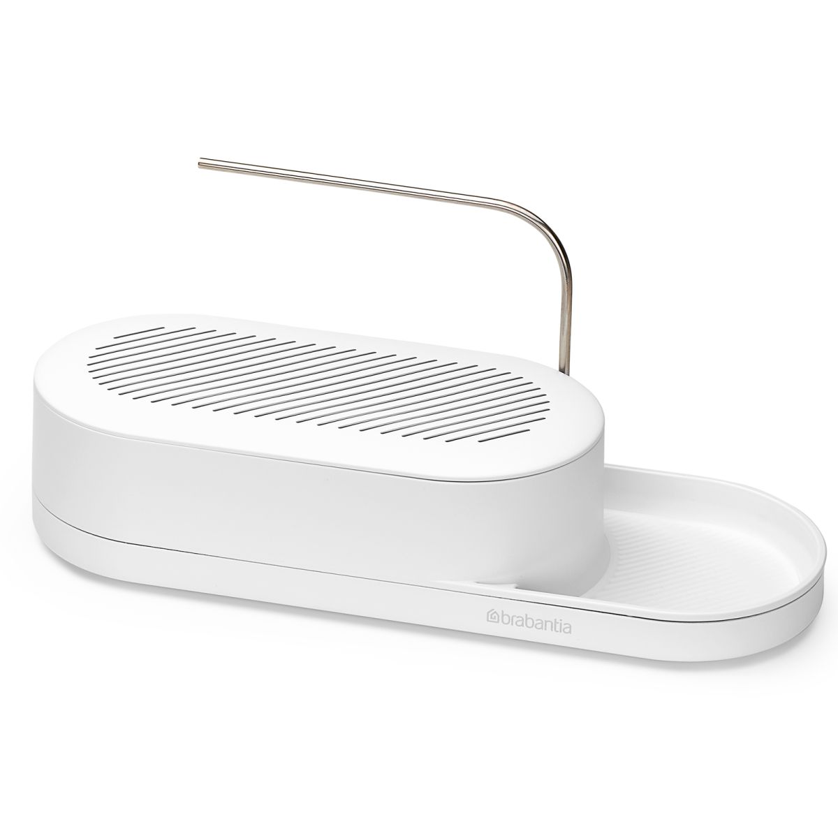 Nutzen Sie den Organizer für Spülutensilien der Marke Brabantia. Verwenden Sie ihn, um die Arbeitsflächen rund um die Spüle leicht in Ordnung zu halten. Lassen Sie sich nicht von seiner Form täuschen. Im Inneren des Behälters finden Sie ausreichend Platz für Schwämme, Scheuerschwämme, Spülbürsten und viele andere Accessoires. Ein Gitter im Inneren sorgt für Belüftung und verhindert muffige Gerüche. Der Organizer bietet außerdem Platz für einen Handtuchhalter. Das Ganze steht auf einer rutschfesten Unterlage, die für Stabilität sorgt. Ein kompaktes Set für Ihre Küche!