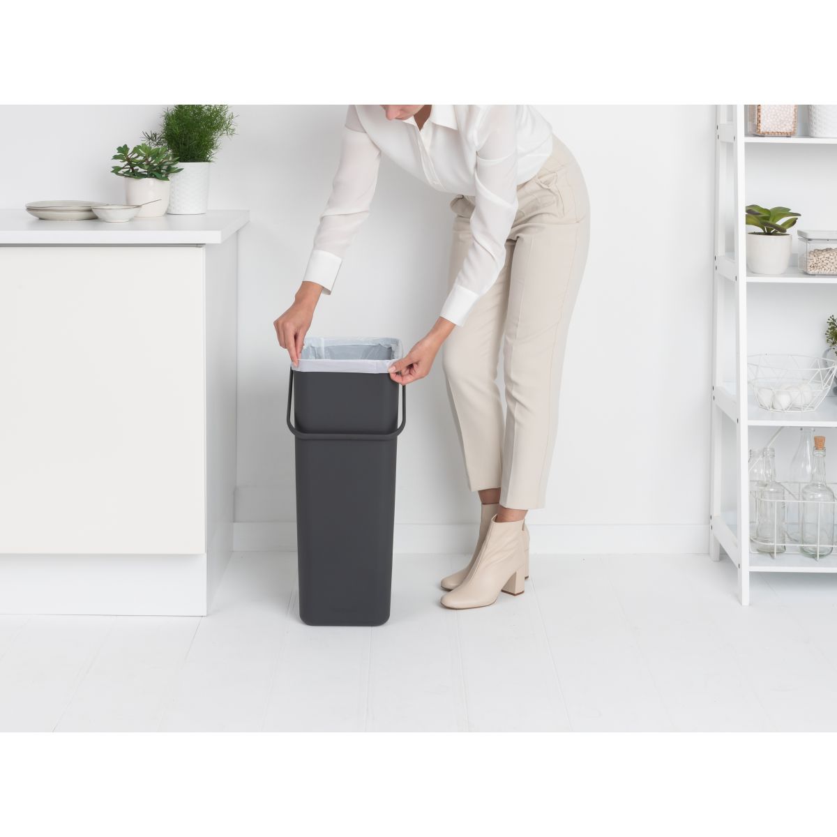 - Im Lieferumfang enthalten ist eine Probe der Brabantia PerfectFit-Beutel (Code L) – einfach zu montieren und ohne unansehnliche umgeschlagene Kanten.