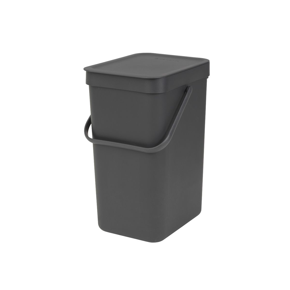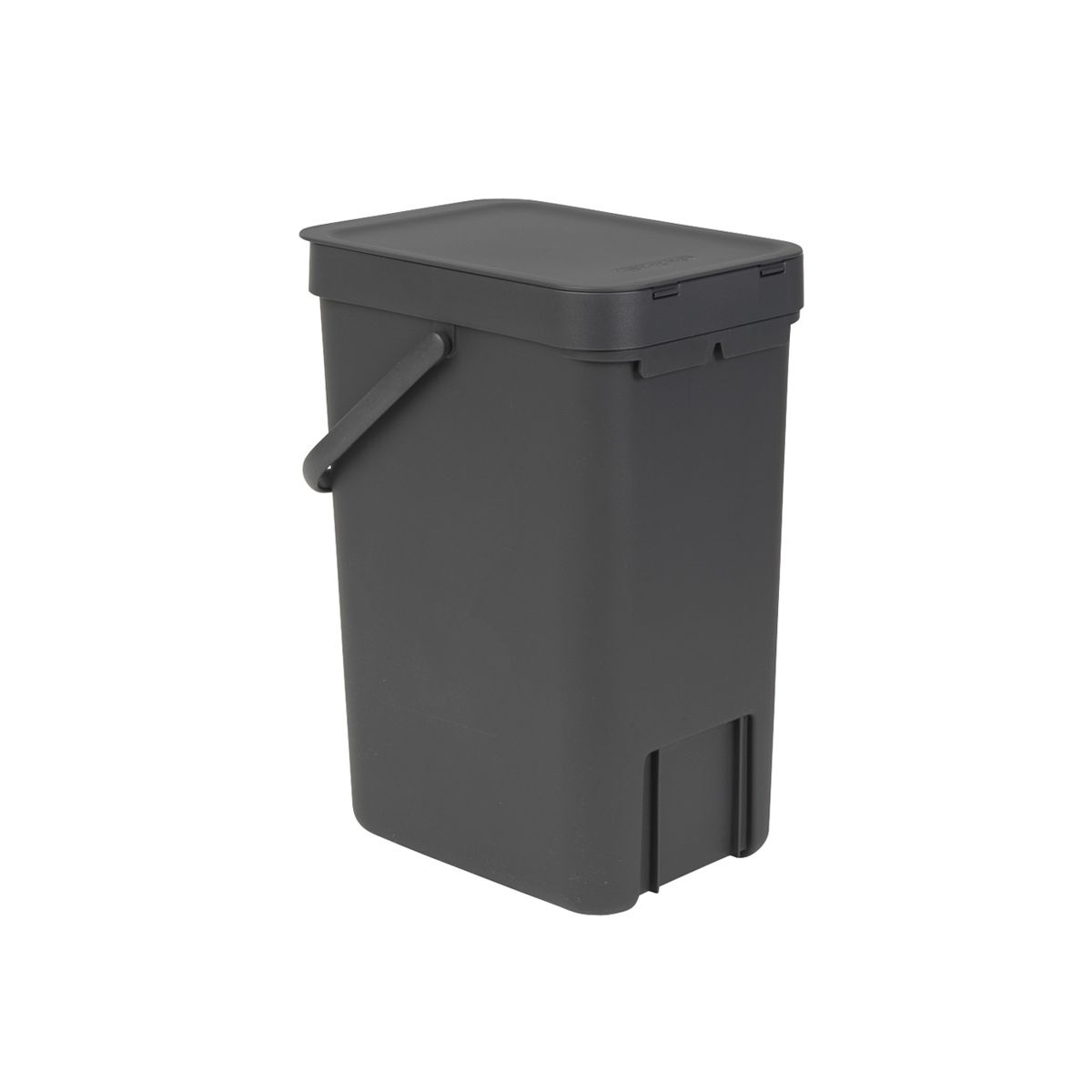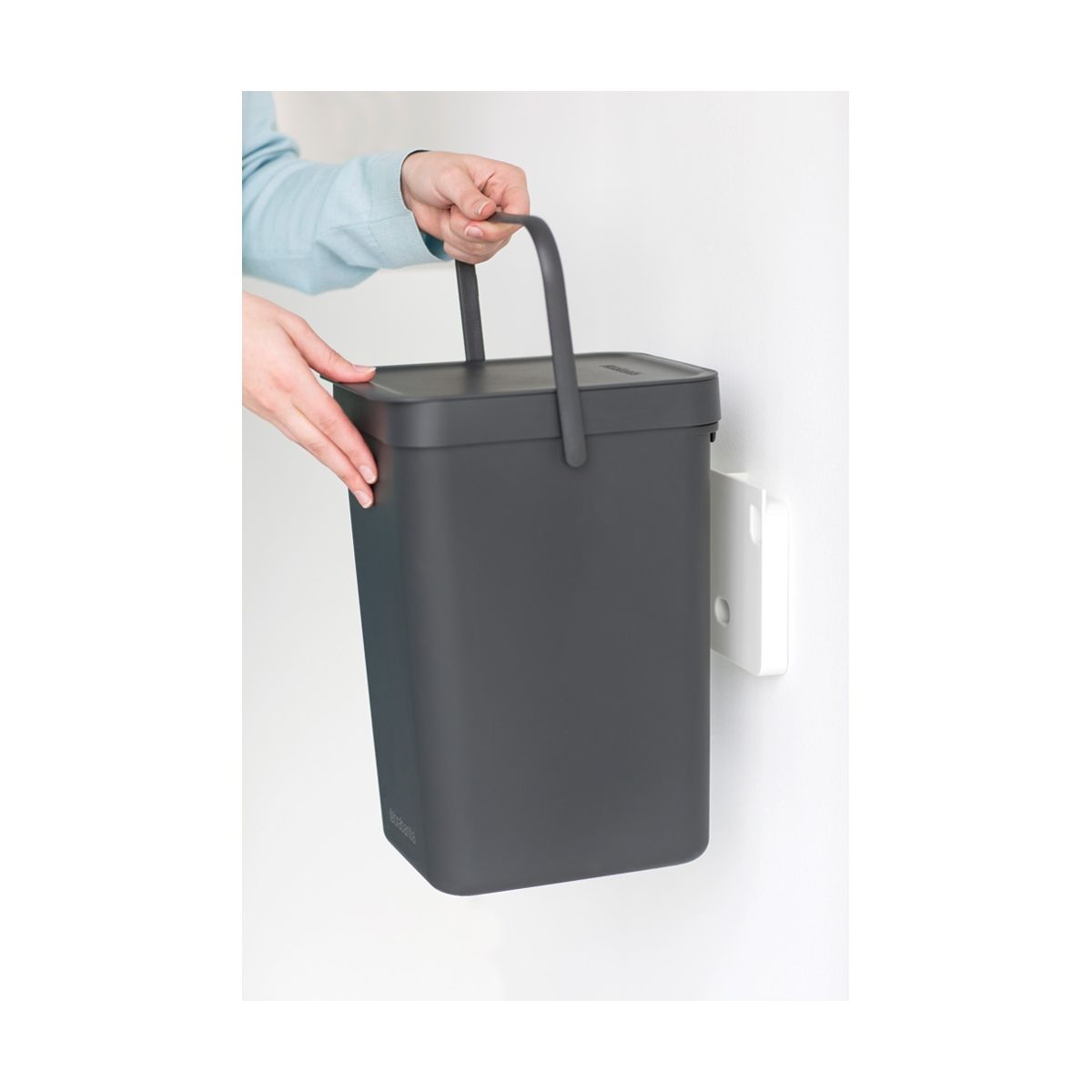 Mülleimer Brabantia Sort & Go mit einem Fassungsvermögen von 12 Litern. Stellen Sie ihn in eine beliebige Ecke, flach an die Wand oder sparen Sie noch mehr Platz auf dem Boden und hängen Sie ihn an die mitgelieferte Wandhalterung. Ist es Zeit, ihn zu leeren? Nichts leichter als das, denn der große Griff an der Unterseite erleichtert das Tragen und Entleeren. Jetzt wird es ordentlich!