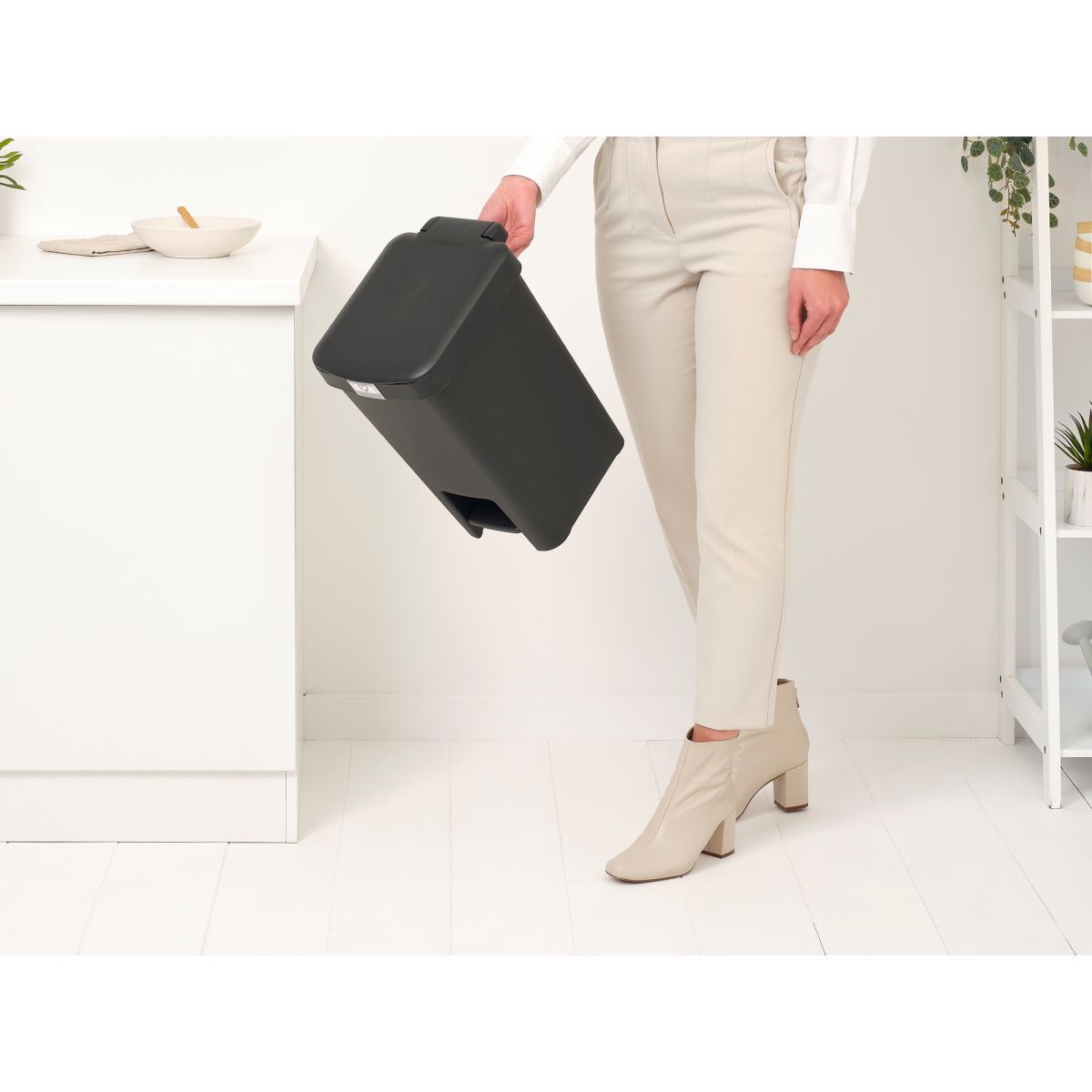 - Kein sichtbarer Beutel – der Rand verdeckt Brabantia PerfectFit-Beutel (Code D) perfekt.