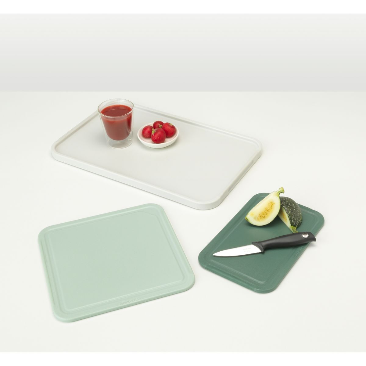 Das Schneiden von Würfeln, Scheiben, Streifen oder Stücken wird mit dem Tasty+ Schneidebrett-Set zum Kinderspiel. Drei stilvolle, rutschfeste Schneidebretter, die Sie beidseitig verwenden können. Das Set besteht aus einem multifunktionalen Schneidebrett in Größe M, einem kompakten Schneidebrett in Größe S und einem geräumigen Schneidebrett in Größe L. Einfach zu verwenden, zu reinigen und zu verstauen. Holen Sie sich noch heute Ihr Set!