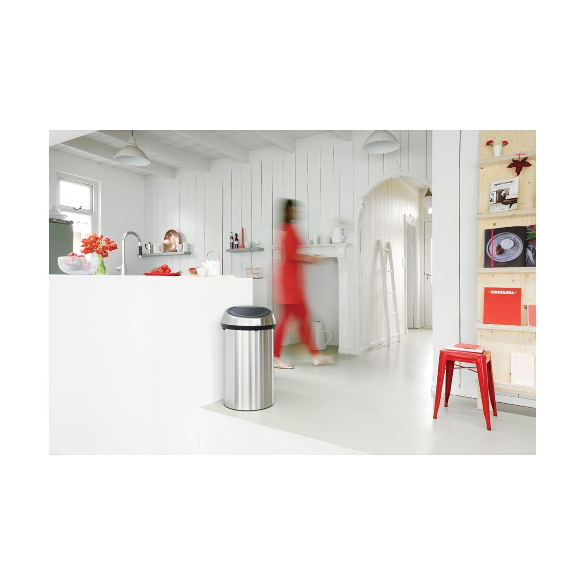 Der sehr große Touch-Behälter von Brabantia fasst bis zu 60 Liter Abfall. Die Öffnung ist groß, sodass auch größere Abfälle problemlos entsorgt werden können. Dank des einzigartigen Scharniers mit gedämpfter Klappe gehören störende Geräusche beim Öffnen oder Schließen des Behälters der Vergangenheit an.