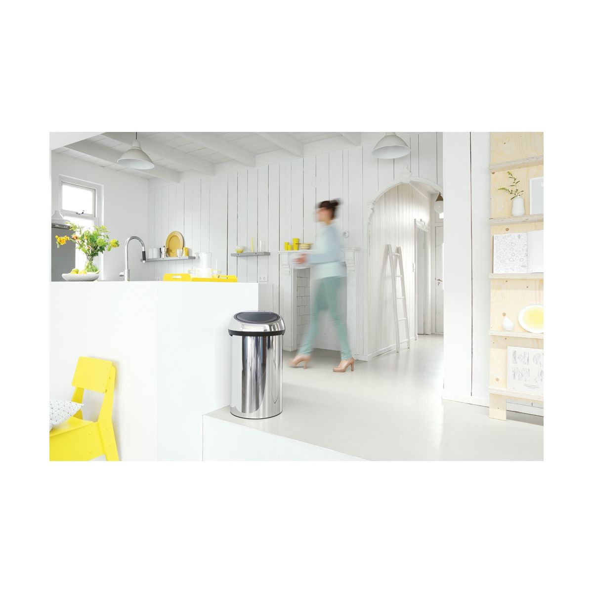 Der sehr große Touch-Behälter von Brabantia fasst bis zu 60 Liter Abfall. Die Öffnung ist groß, sodass auch größere Abfälle problemlos entsorgt werden können. Dank des einzigartigen Scharniers mit gedämpfter Klappe gehören störende Geräusche beim Öffnen oder Schließen des Behälters der Vergangenheit an.
