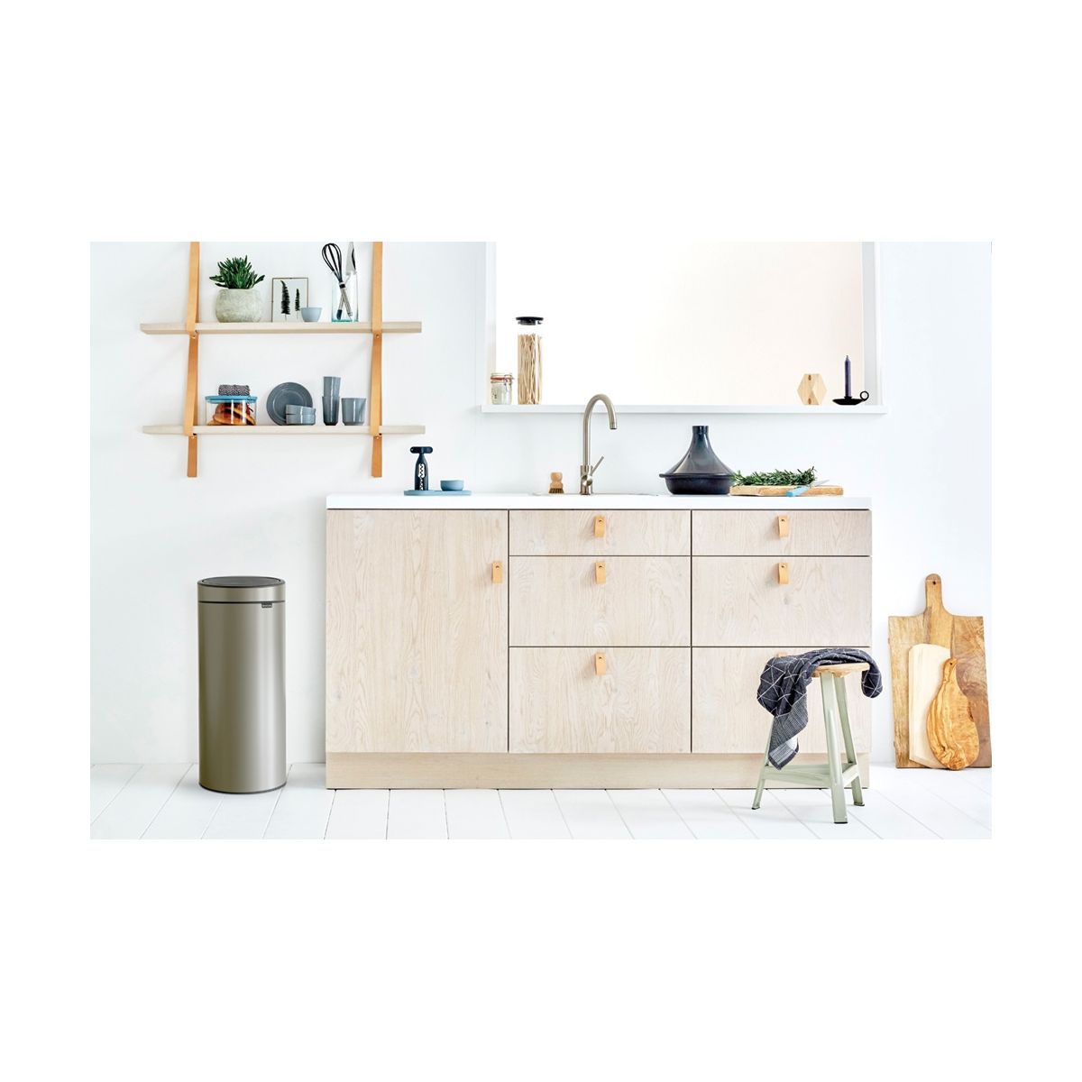 Brabantia Touch-Behälter mit einem Fassungsvermögen von 30 Litern. Ein leichter Druck auf den Deckel genügt, und er öffnet sich sanft. Das Öffnen, Auswechseln der Müllbeutel und Reinigen ist wirklich kinderleicht. Dieser Touch-Behälter hat eine runde Form, ist robust und schützt dank seiner Schutzkante den Boden. Genießen Sie eine intensive, problemlose Nutzung!