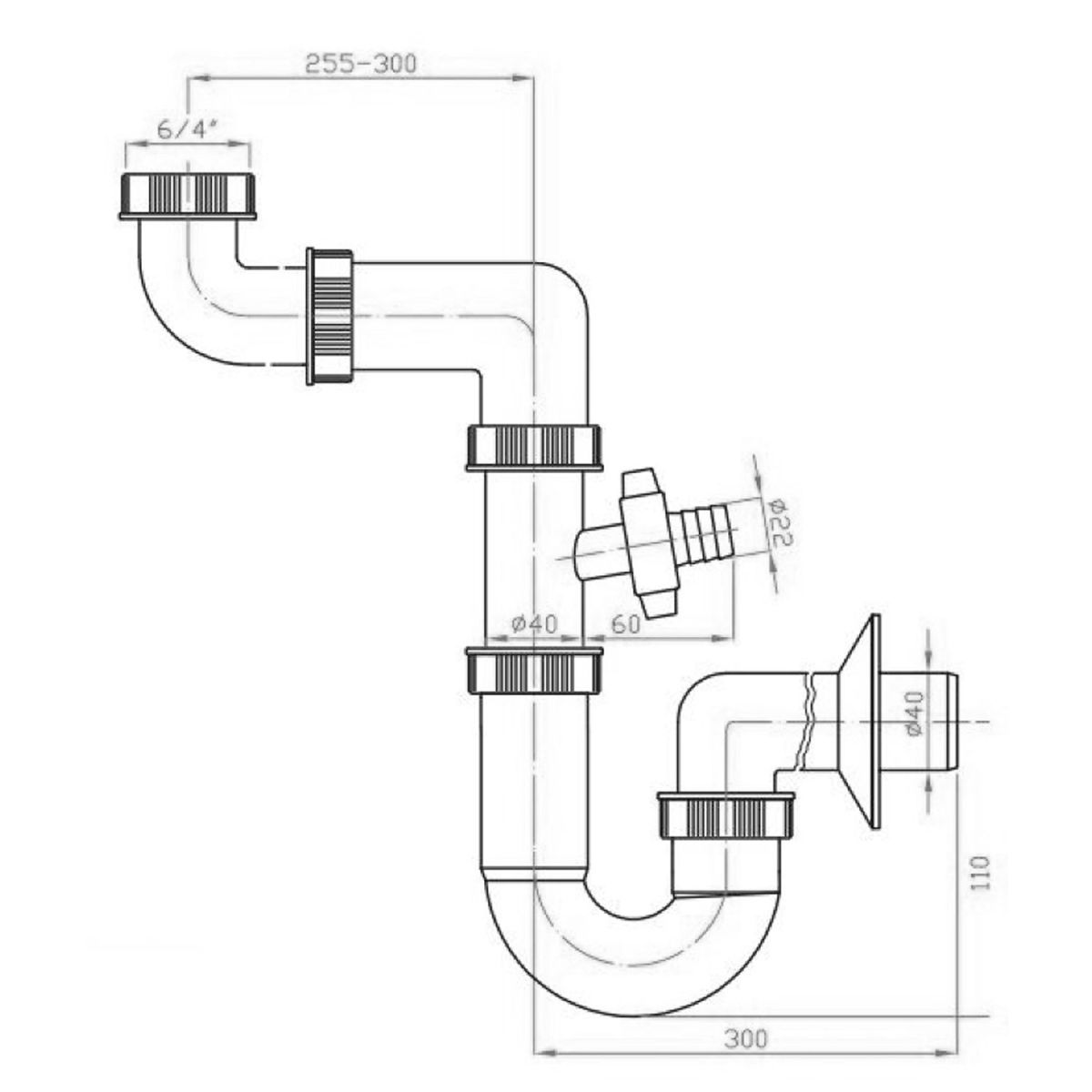 - Abflussdurchmesser: 40 mm