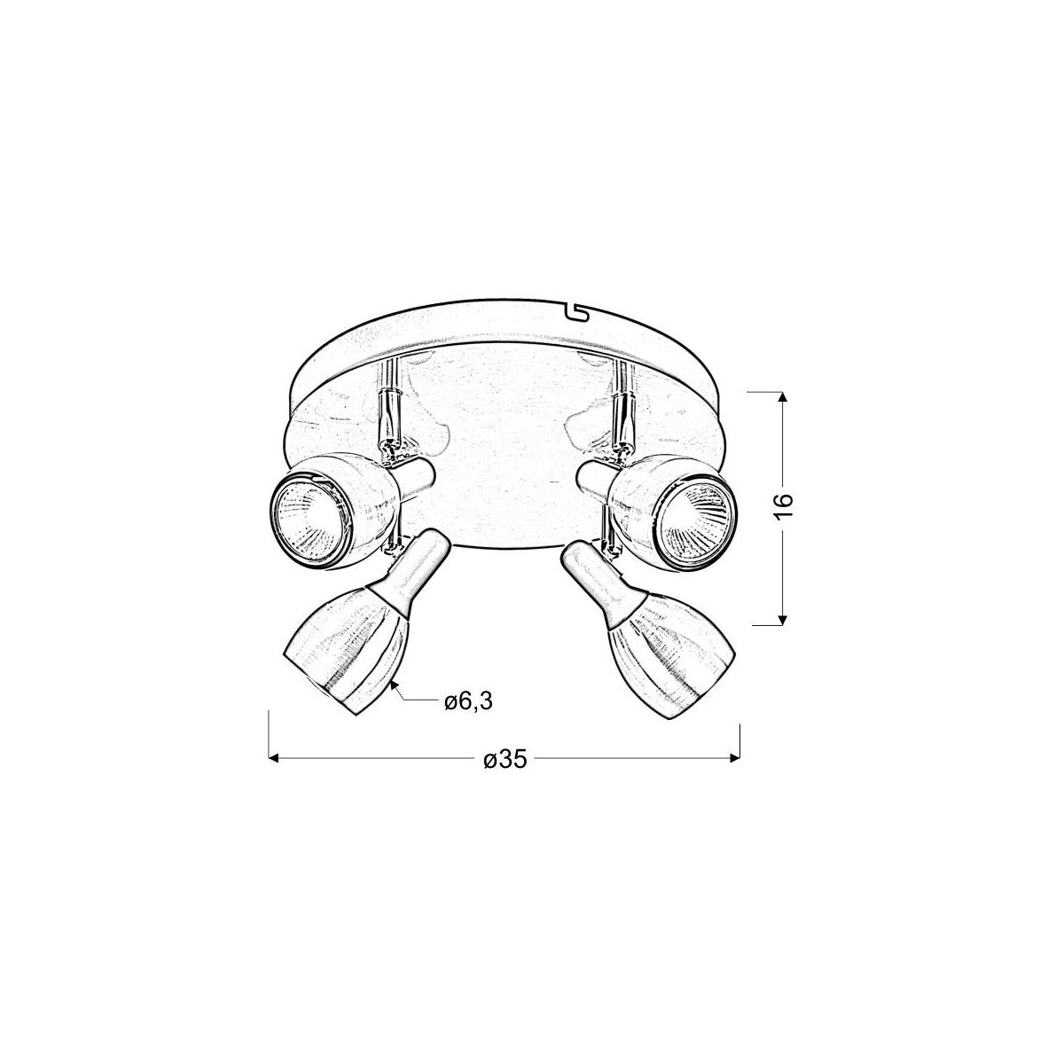 - Durchmesser des Lampenschirms: 6,3 cm