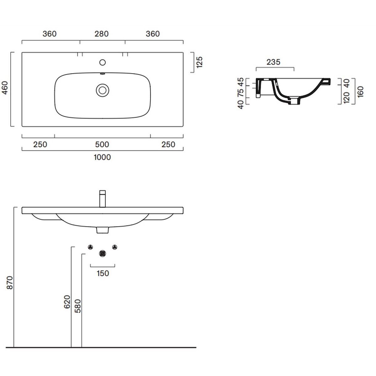 Catalano Alvea Waschbecken 100x46 cm rechteckig Klassisch-Möbel weiß 0621010001